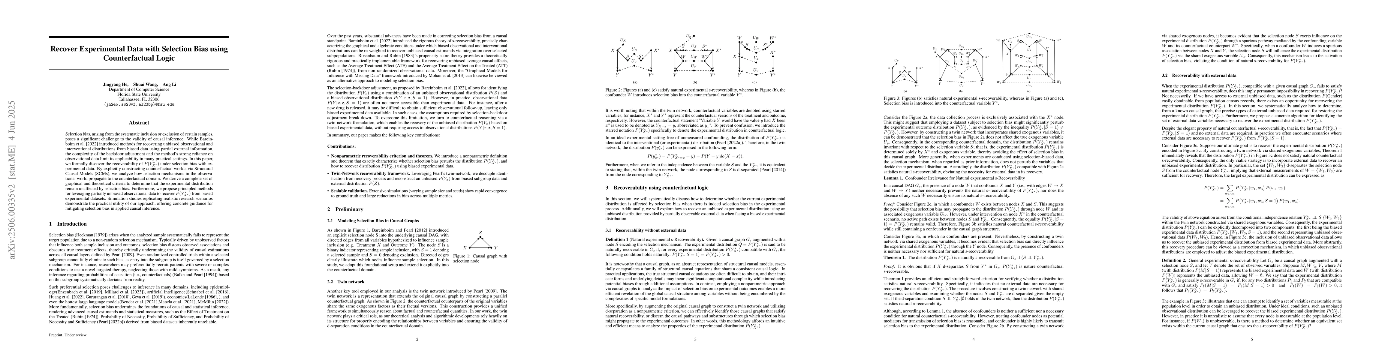 Researchers developed a method to recover experimental data from biased samples using counterfactual logic, demonstrating that experimental distributions remain unaffected by selection bias. Their approach leverages partially unbiased observational data to mitigate selection bias in causal inference.