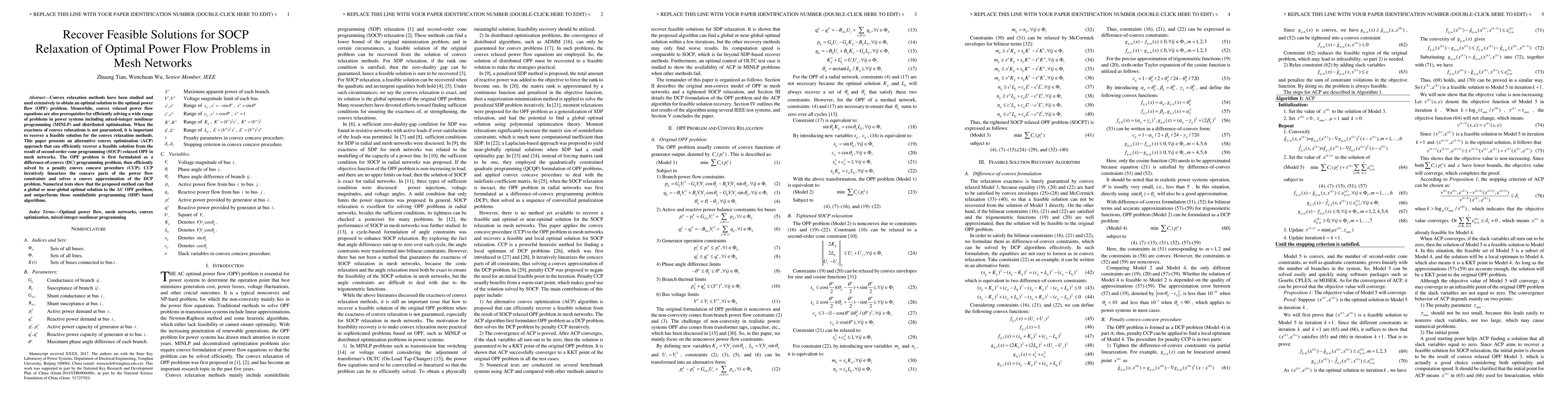 This paper proposes an alternative convex optimization approach to recover feasible solutions for the second-order cone programming (SOCP) relaxation of optimal power flow (OPF) problems in mesh networks. It uses a penalty convex concave procedure (CCP) to iteratively solve the OPF problem formulated as a difference-of-convex (DC) programming problem, demonstrating superior performance over semidefinite programming (SDP) based algorithms.