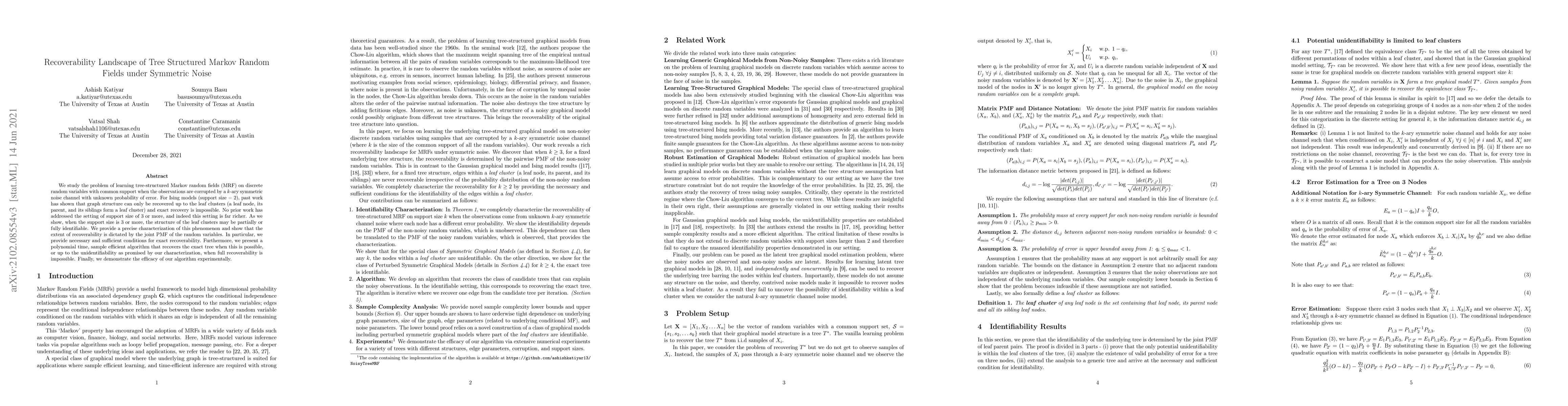 Researchers develop an algorithm to recover tree-structured Markov random fields under symmetric noise with support sizes of 3 or more, enabling partial or full identification of leaf cluster structures. The extent of recoverability is dictated by the joint PMF of the random variables and can be achieved exactly or up to unidentifiability through a polynomial time, sample-efficient algorithm.