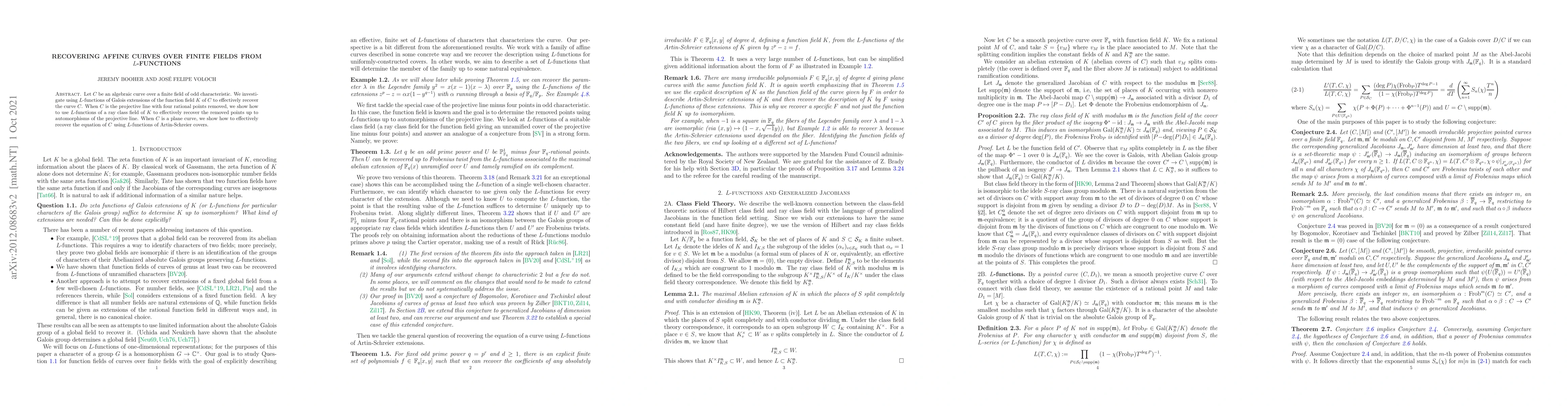 Let $K$ be the function field of a curve over a finite field of odd characteristic. We investigate using $L$-functions of Galois extensions of $K$ to effectively recover $K$. When $K$ is the function field of the projective line with four rational points removed, we show how to use $L$-functions of a ray class field to effectively recover the removed points up to automorphisms of the projective line. When $K$ is the function field of a plane curve, we show how to effectively recover the equation of that curve using $L$-functions of Artin-Schreier extensions of $K$.