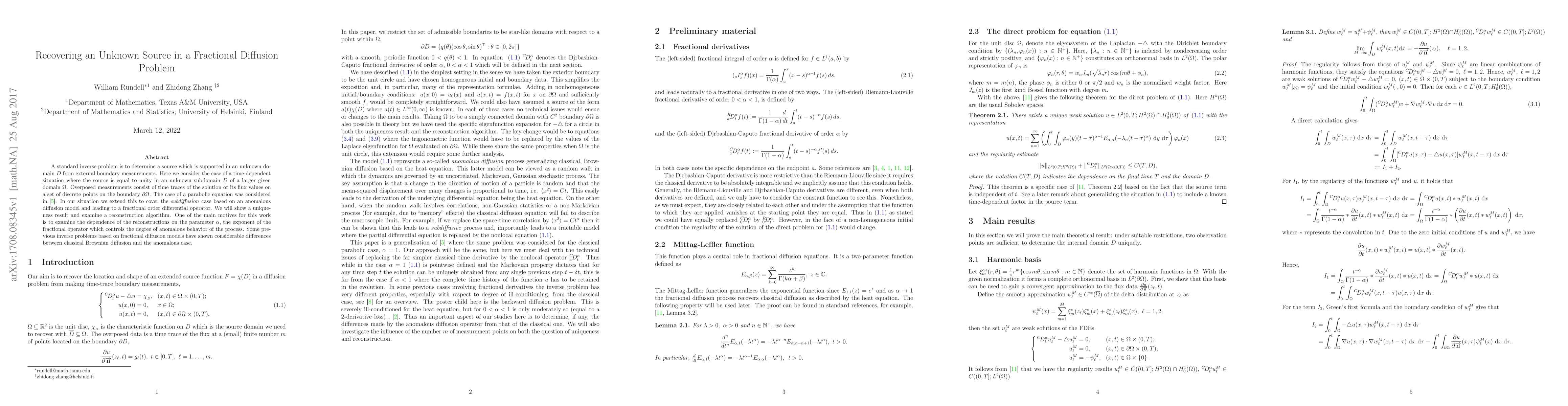 This paper addresses the inverse problem of determining an unknown source within a subdomain $D$ from boundary measurements in a fractional diffusion model. It extends prior work on parabolic equations to subdiffusion scenarios and explores the effect of the fractional order parameter $\alpha$ on reconstruction accuracy.