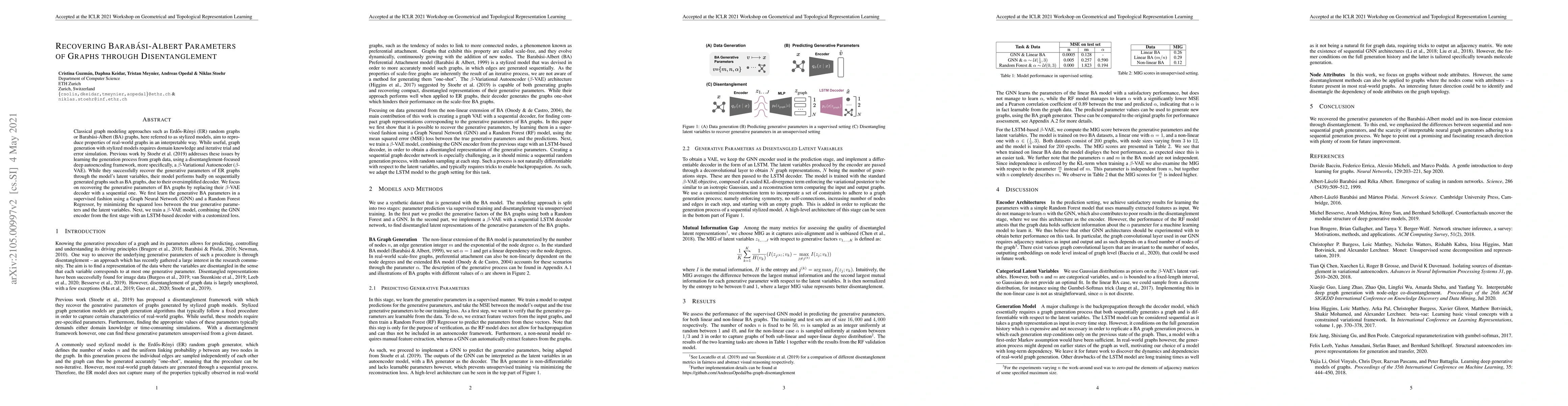Classical graph modeling approaches such as Erd\H{o}s R\'{e}nyi (ER) random graphs or Barab\'asi-Albert (BA) graphs, here referred to as stylized models, aim to reproduce properties of real-world graphs in an interpretable way. While useful, graph generation with stylized models requires domain knowledge and iterative trial and error simulation. Previous work by Stoehr et al. (2019) addresses these issues by learning the generation process from graph data, using a disentanglement-focused deep autoencoding framework, more specifically, a $\beta$-Variational Autoencoder ($\beta$-VAE). While they successfully recover the generative parameters of ER graphs through the model's latent variables, their model performs badly on sequentially generated graphs such as BA graphs, due to their oversimplified decoder. We focus on recovering the generative parameters of BA graphs by replacing their $\beta$-VAE decoder with a sequential one. We first learn the generative BA parameters in a supervised fashion using a Graph Neural Network (GNN) and a Random Forest Regressor, by minimizing the squared loss between the true generative parameters and the latent variables. Next, we train a $\beta$-VAE model, combining the GNN encoder from the first stage with an LSTM-based decoder with a customized loss.