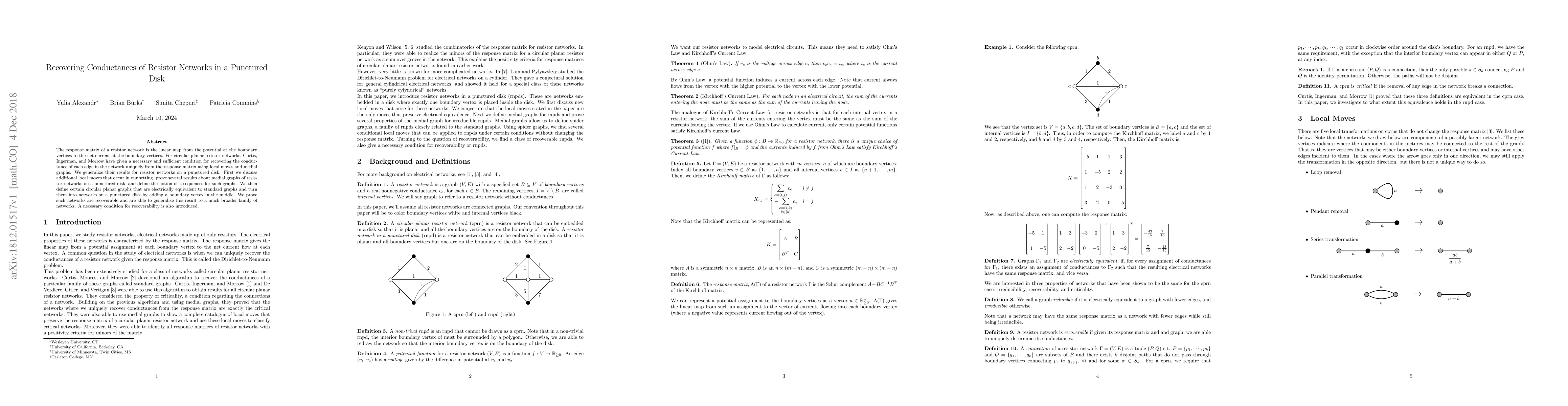 Researchers have developed a method to uniquely recover conductance values in resistor networks on a punctured disk, generalizing previous results for circular planar networks.
