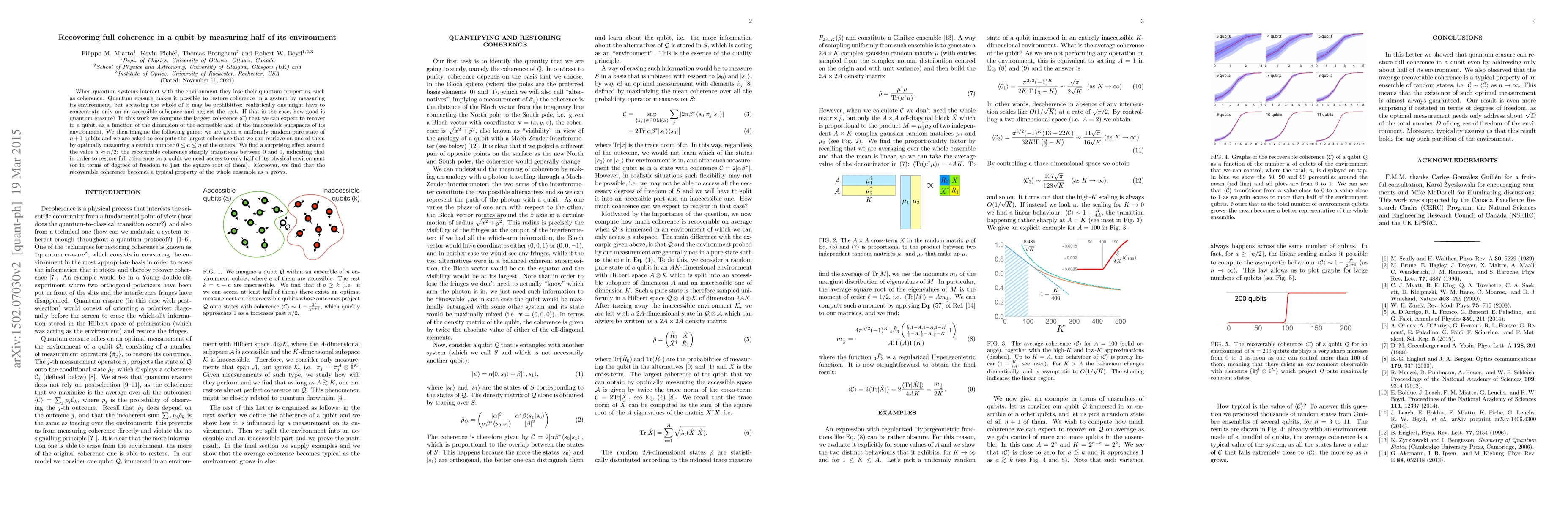 This paper investigates the recovery of quantum coherence in a qubit by measuring only part of its environment, finding that full coherence can be restored by measuring approximately half of the environment. The study reveals a sharp transition in recoverable coherence around this measurement threshold, indicating that only a fraction of the environment is needed to restore full coherence.