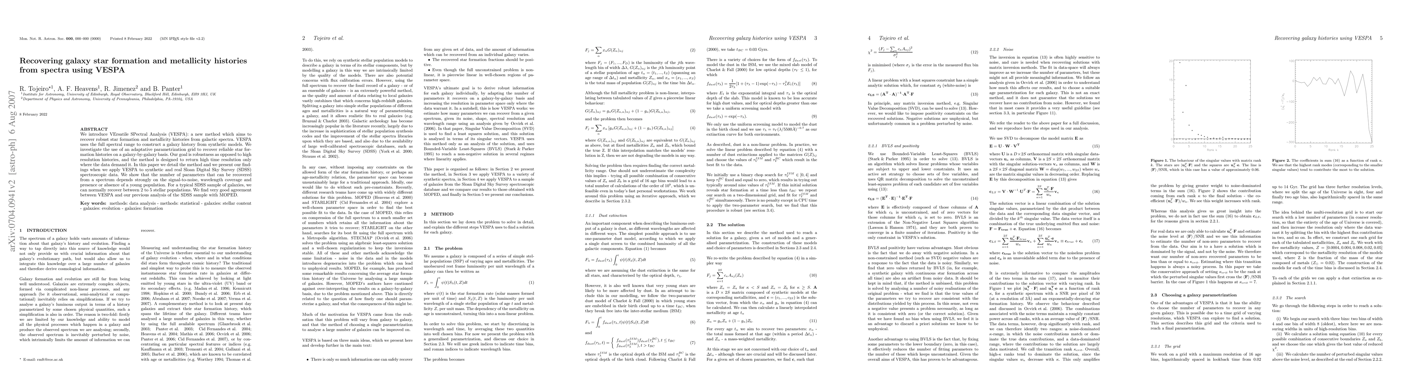 Introduced VESPA, a method to recover star formation and metallicity histories from galactic spectra using synthetic models and adaptive parametrization grids, focusing on robustness over high resolution.