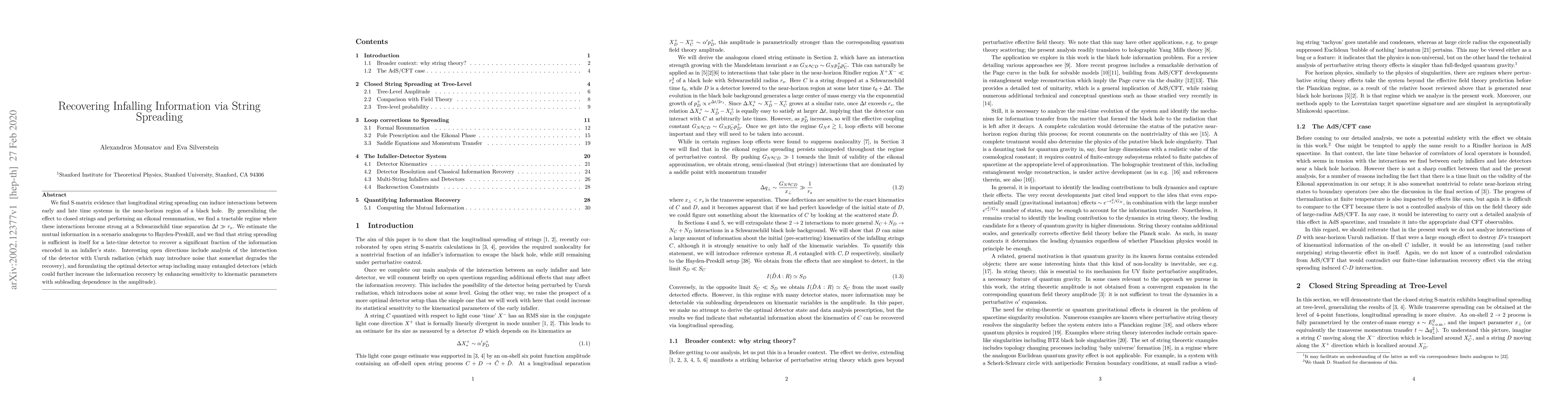 We find S-matrix evidence that longitudinal string spreading can induce interactions between early and late time systems in the near-horizon region of a black hole. By generalizing the effect to closed strings and performing an eikonal resummation, we find a tractable regime where these interactions become strong at a Schwarzschild time separation $\Delta t \gg r_s$. We estimate the mutual information in a scenario analogous to Hayden-Preskill, and we find that string spreading is sufficient in itself for a late-time detector to recover a significant fraction of the information encoded in an infaller's state. Interesting open directions include analysis of the interaction of the detector with Unruh radiation (which may introduce noise that somewhat degrades the recovery), and formulating the optimal detector setup including many entangled detectors (which could further increase the information recovery by enhancing sensitivity to kinematic parameters with subleading dependence in the amplitude).