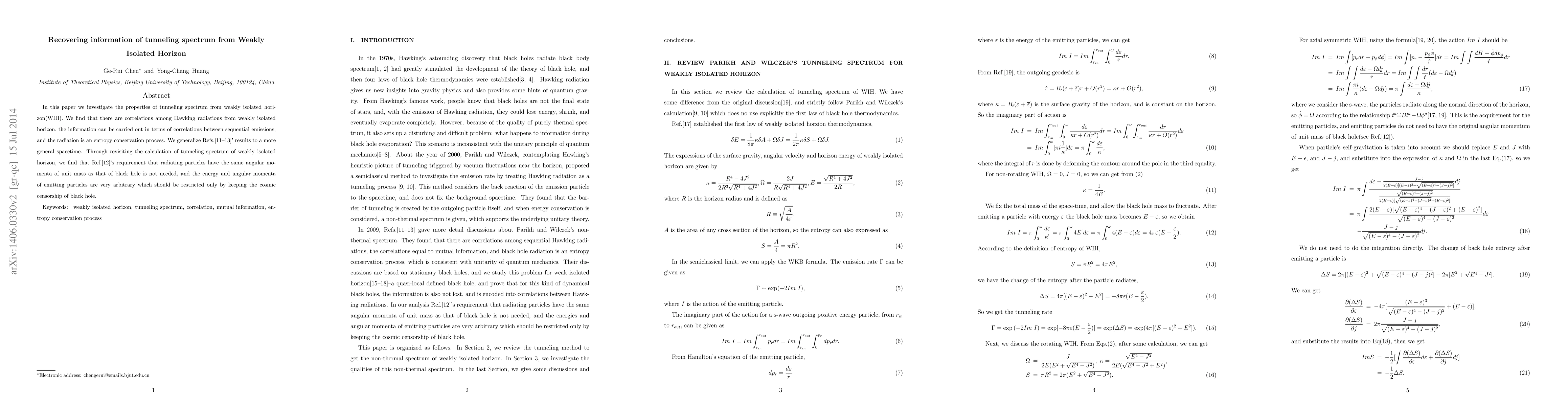 This paper explores the tunneling spectrum from weakly isolated horizons and finds that Hawking radiation correlations carry information, conserving entropy. It generalizes previous results and shows that radiating particles need not have the same angular momenta as the black hole, only needing to respect cosmic censorship.