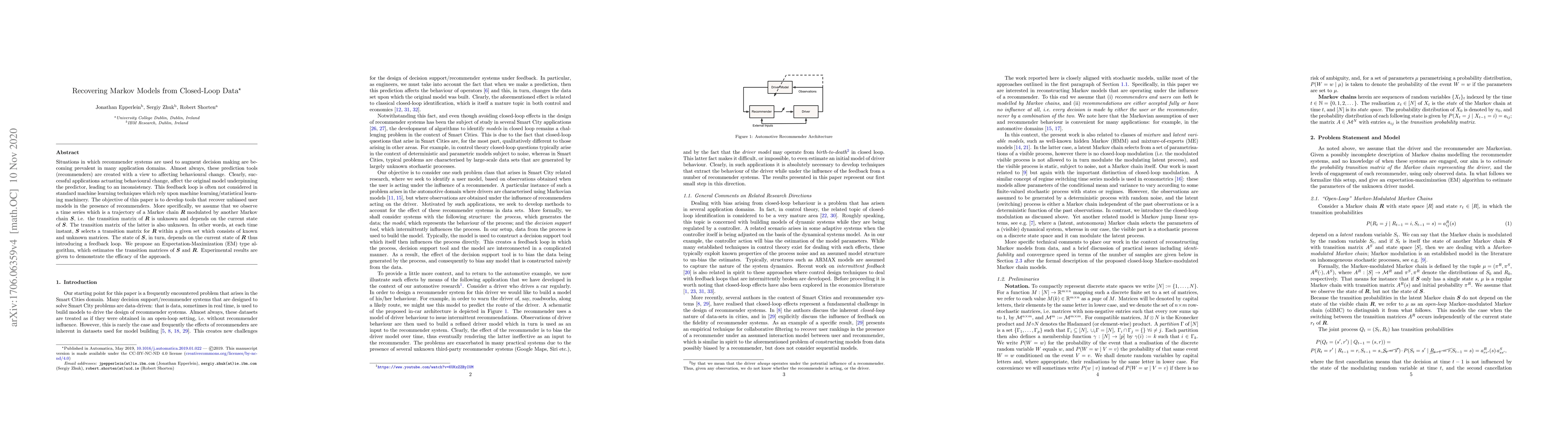 Situations in which recommender systems are used to augument decision making are becoming prevalent in many application domains. Almost always, these prediction tools (recommenders) are created with a view to affecting behavioural change. Clearly, successful applications actuating behavioural change, affect the original model underpinning the predictor, leading to an inconsistency. This feedback loop is often not considered in standard so-called Big Data learning techniques which rely upon machine learning/statistical learning machinery. The objective of this paper is to develop tools that recover unbiased user models in the presence of recommenders. More specifically, we assume that we observe a time series which is a trajectory of a Markov chain ${R}$ modulated by another Markov chain ${S}$, i.e. the transition matrix of ${R}$ is unknown and depends on the current state of ${S}$. The transition matrix of the latter is also unknown. In other words, at each time instant, ${S}$ selects a transition matrix for ${R}$ within a given set which consists of known and unknown matrices. The state of ${S}$, in turn, depends on the current state of ${R}$ thus introducing a feedback loop. We propose an Expectation-Maximization (EM) type algorithm, which estimates the transition matrices of ${S}$ and ${R}$. Experimental results are given to demonstrate the efficacy of the approach.