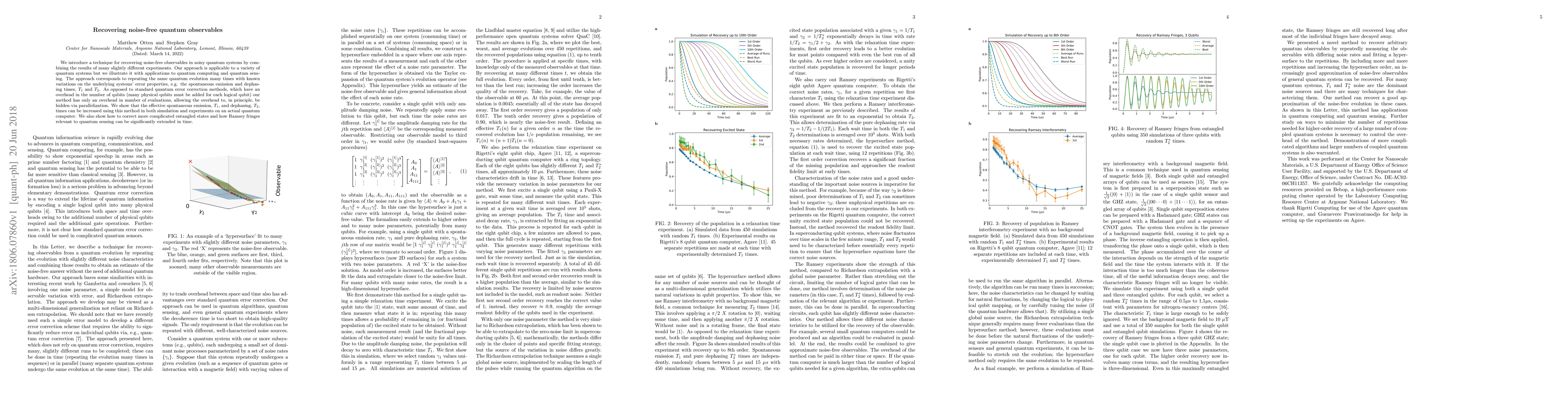 We introduce a technique for recovering noise-free observables in noisy quantum systems by combining the results of many slightly different experiments. Our approach is applicable to a variety of quantum systems but we illustrate it with applications to quantum computing and quantum sensing. The approach corresponds to repeating the same quantum evolution many times with known variations on the underlying systems' error properties, e.g. the spontaneous emission and dephasing times, $T_1$ and $T_2$. As opposed to standard quantum error correction methods, which have an overhead in the number of qubits (many physical qubits must be added for each logical qubit) our method has only an overhead in number of evaluations, allowing the overhead to, in principle, be hidden via parallelization. We show that the effective spontaneous emission, $T_1$, and dephasing, $T_2$, times can be increased using this method in both simulation and experiments on an actual quantum computer. We also show how to correct more complicated entangled states and how Ramsey fringes relevant to quantum sensing can be significantly extended in time.