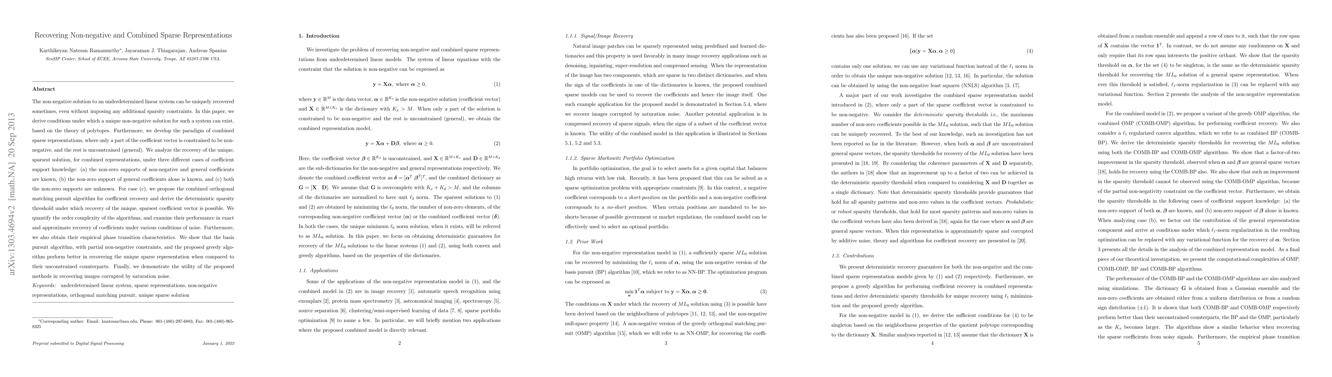 This paper explores conditions for uniquely recovering non-negative solutions to underdetermined linear systems and develops combined sparse representations where only part of the coefficient vector is non-negative. It proposes an algorithm for recovering the sparsest solution under various support knowledge scenarios and demonstrates improved performance in noisy conditions and practical applications like image recovery.
