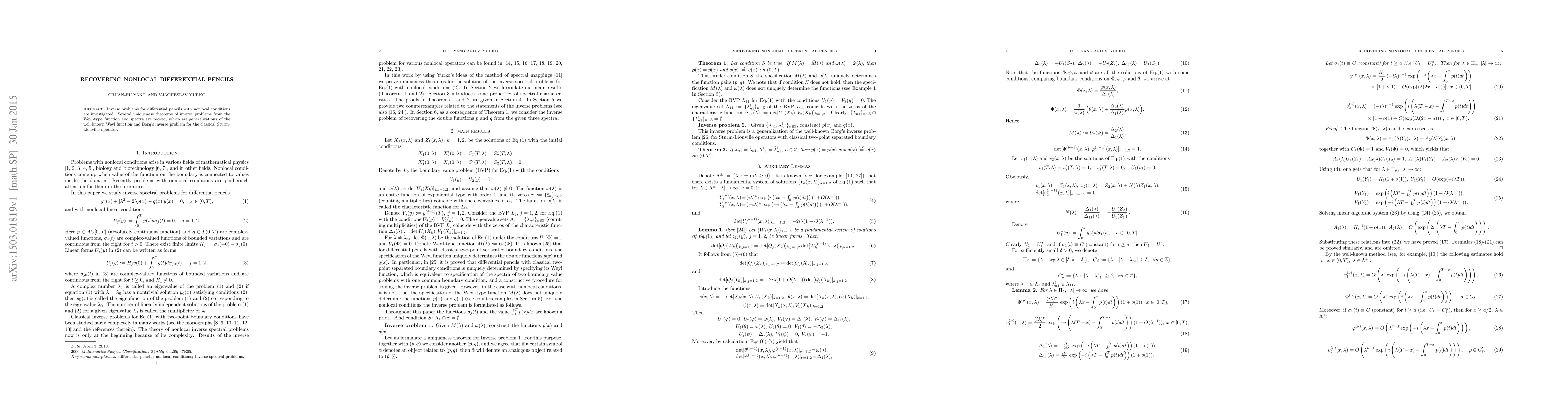 This paper investigates inverse problems for differential pencils under nonlocal conditions, proving several uniqueness theorems based on the Weyl-type function and spectra, which extend classical results for the Sturm-Liouville operator.