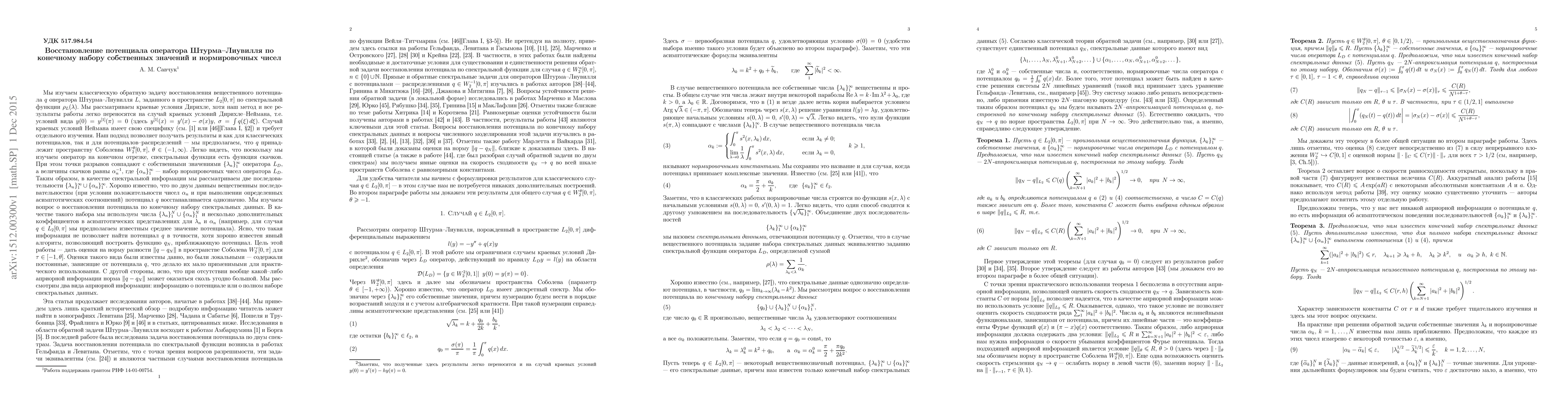 A research paper recovers a potential of a Sturm-Liouville operator from its eigenvalues and norming constants with improved accuracy.