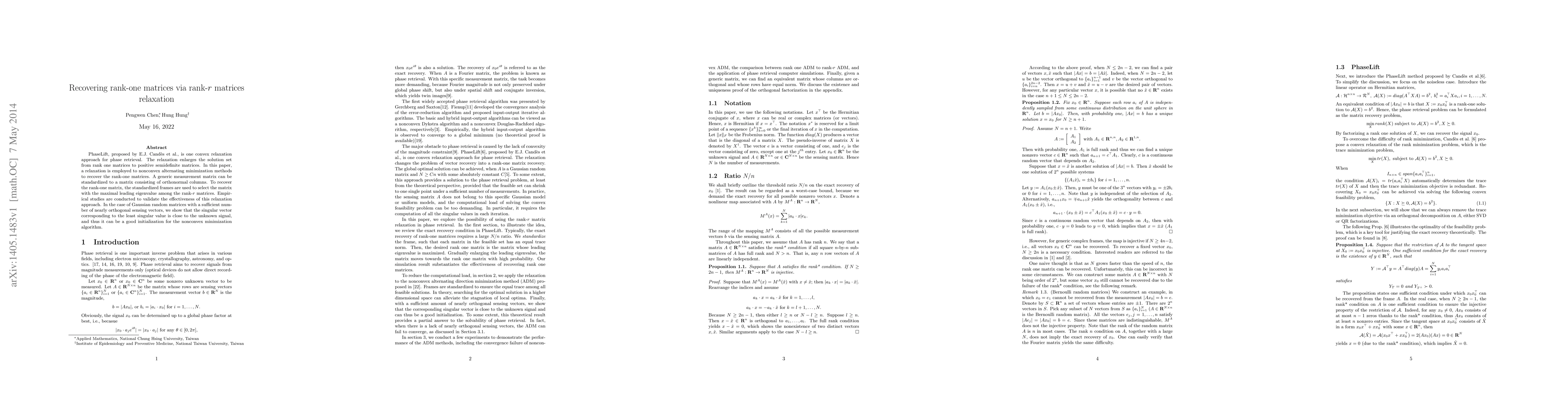 This paper explores a relaxation method to recover rank-one matrices using nonconvex alternating minimization techniques. It leverages standardized orthonormal frames to select matrices with maximal leading eigenvalues among rank-$r$ matrices, validated through empirical studies and theoretical analysis for Gaussian random matrices.