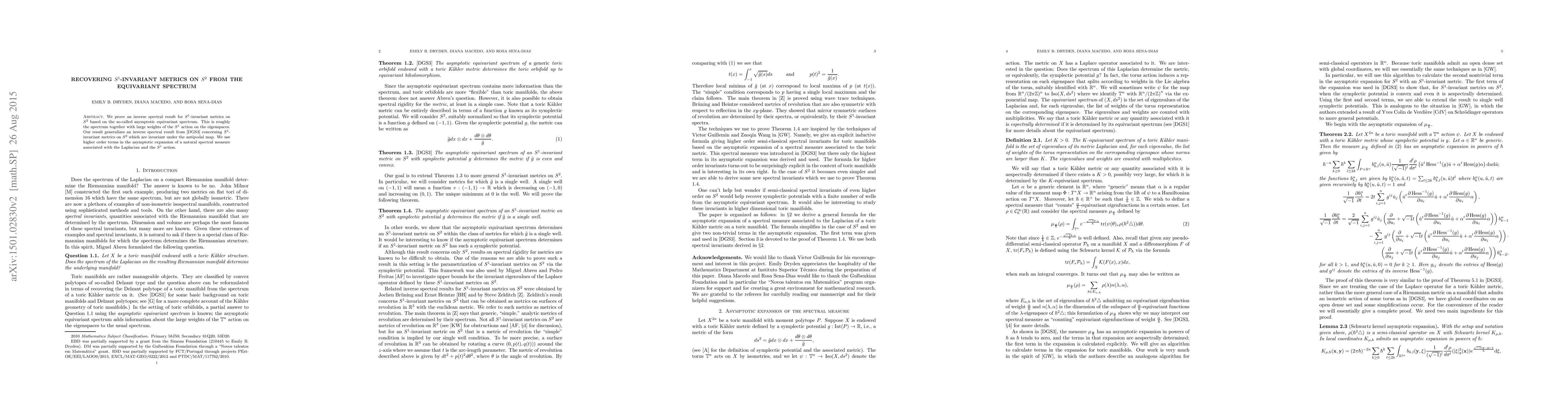 The paper introduces a novel approach to recovering $S^1$-invariant metrics on $S^2$ using the asymptotic equivariant spectrum, extending previous work on inverse spectral theory.