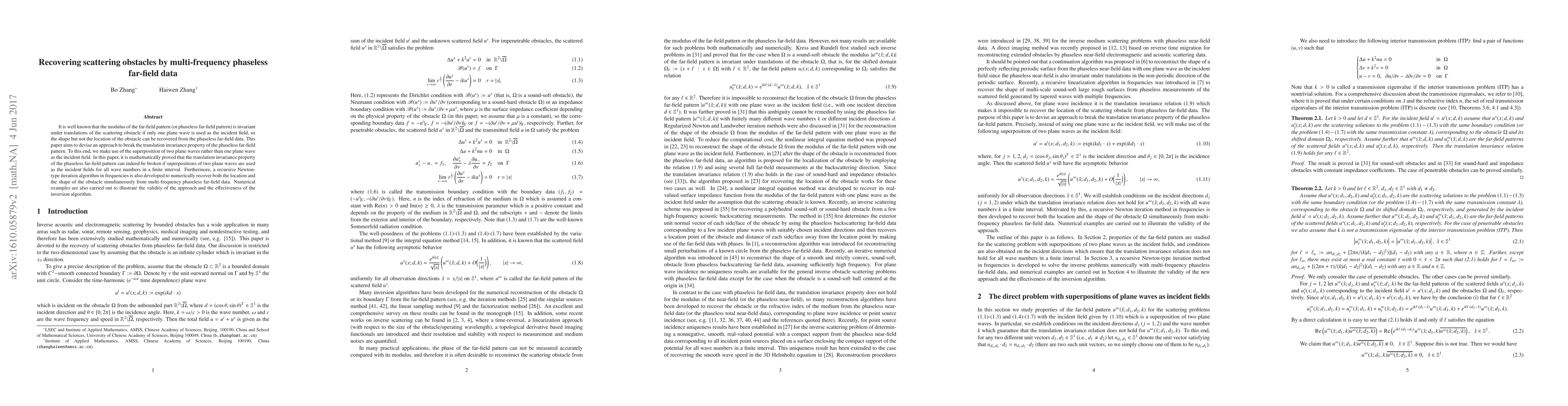 This paper proves that using superpositions of multiple plane waves can break the translation invariance of phaseless far-field data, allowing recovery of both the shape and location of scattering obstacles. A recursive Newton-type iteration algorithm is developed to achieve this from multi-frequency phaseless data, validated through numerical examples.