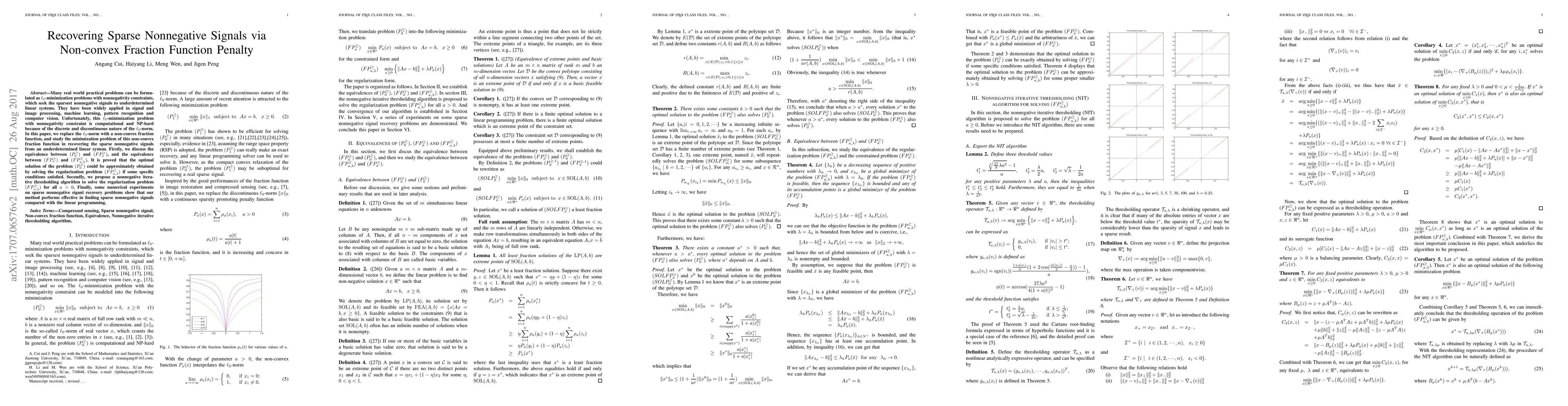 This paper proposes a non-convex fraction function penalty to replace the $\ell_{0}$-norm for recovering sparse nonnegative signals from underdetermined linear systems. It demonstrates the equivalence between different optimization formulations and introduces a nonnegative iterative thresholding algorithm to solve the regularization problem, showing effective performance in numerical experiments compared to linear programming.
