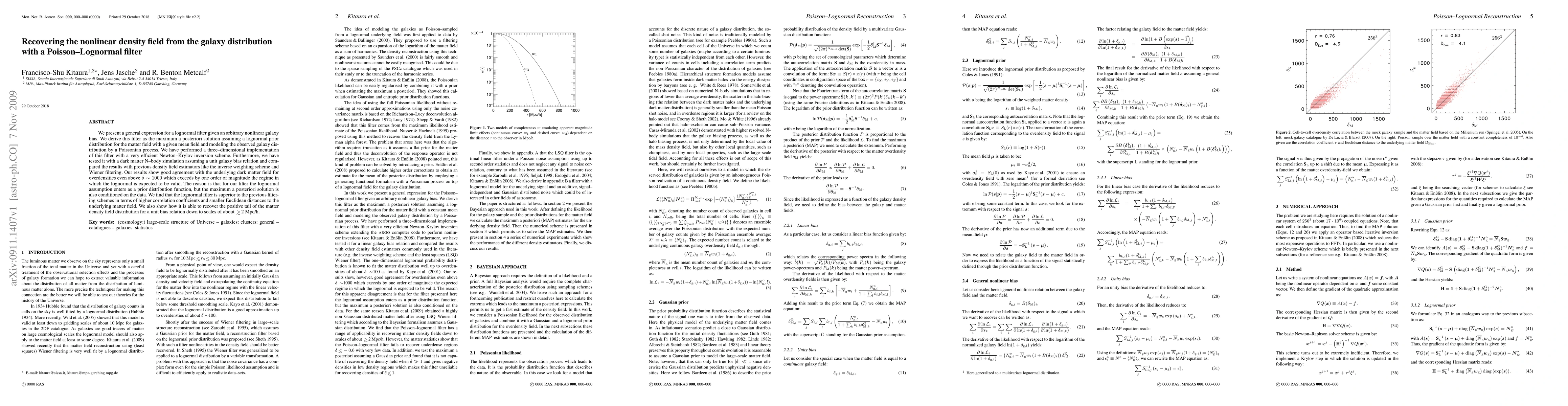 We present a general expression for a lognormal filter given an arbitrary nonlinear galaxy bias. We derive this filter as the maximum a posteriori solution assuming a lognormal prior distribution for the matter field with a given mean field and modeling the observed galaxy distribution by a Poissonian process. We have performed a three-dimensional implementation of this filter with a very efficient Newton-Krylov inversion scheme. Furthermore, we have tested it with a dark matter N-body simulation assuming a unit galaxy bias relation and compared the results with previous density field estimators like the inverse weighting scheme and Wiener filtering. Our results show good agreement with the underlying dark matter field for overdensities even above delta~1000 which exceeds by one order of magnitude the regime in which the lognormal is expected to be valid. The reason is that for our filter the lognormal assumption enters as a prior distribution function, but the maximum a posteriori solution is also conditioned on the data. We find that the lognormal filter is superior to the previous filtering schemes in terms of higher correlation coefficients and smaller Euclidean distances to the underlying matter field. We also show how it is able to recover the positive tail of the matter density field distribution for a unit bias relation down to scales of about >~2 Mpc/h.