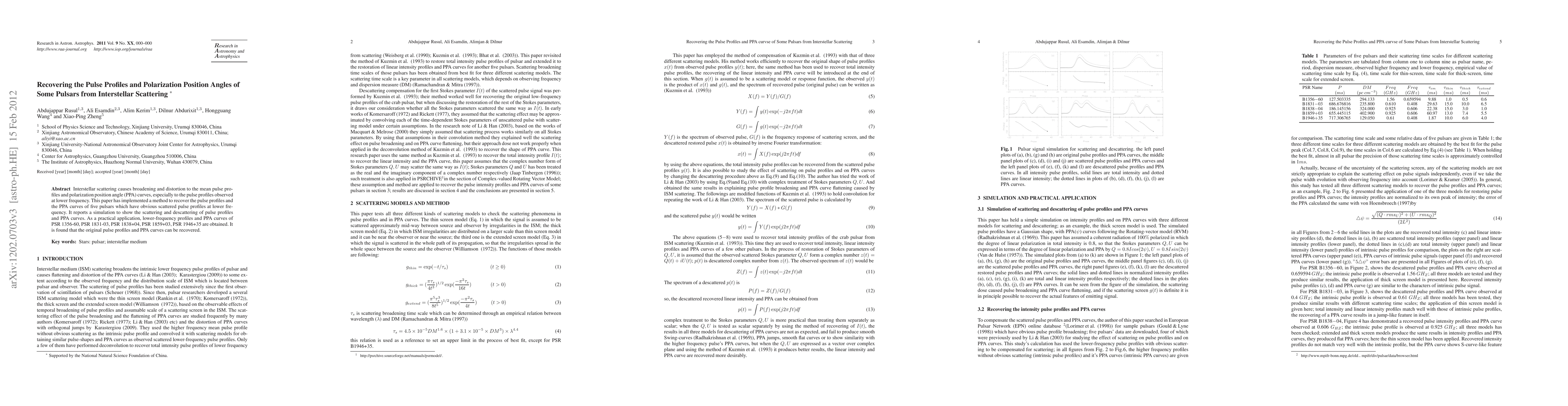 This paper presents a method to recover the original pulse profiles and polarization position angles of five pulsars affected by interstellar scattering, demonstrating its effectiveness through simulations and practical application on selected pulsars. The results show successful recovery of the distorted profiles and curves.