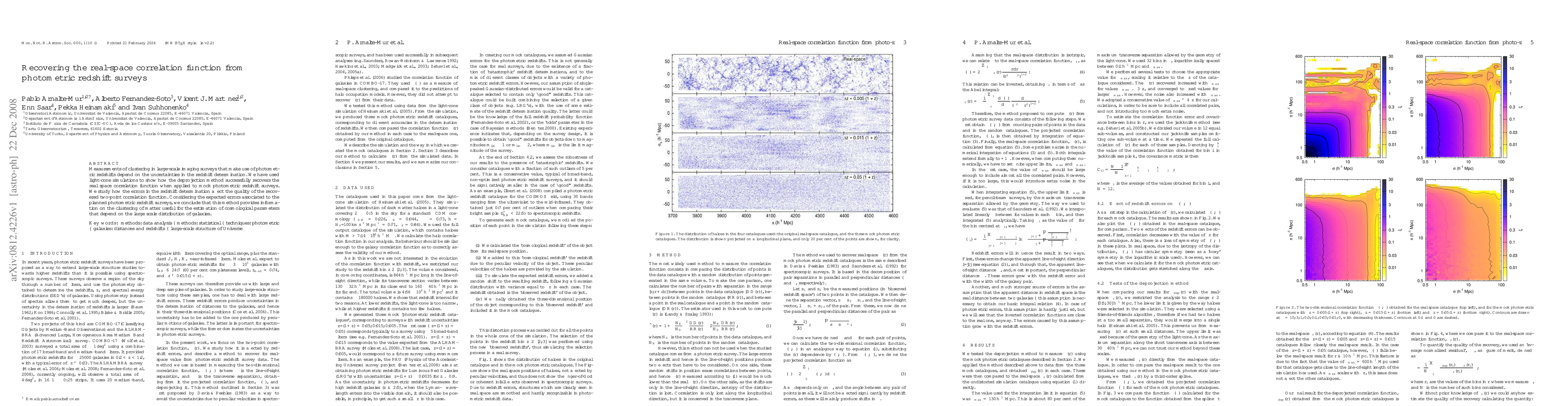 This paper demonstrates that the deprojection method can effectively recover the real-space correlation function from photometric redshift surveys, despite uncertainties in redshift determination. The study concludes that this method provides valuable information for estimating cosmological parameters based on large-scale galaxy distribution.