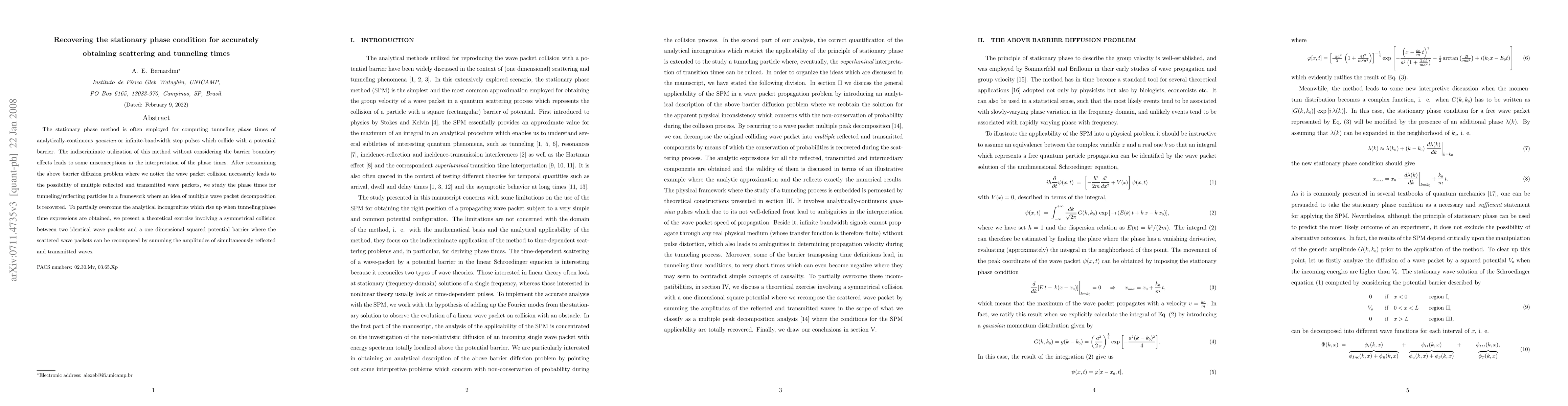 This paper examines the stationary phase method for calculating tunneling phase times, highlighting the misconceptions arising from its indiscriminate use. It proposes a framework for accurately determining scattering and tunneling times by considering multiple reflected and transmitted wave packets, demonstrated through a symmetrical collision scenario with a one-dimensional squared potential barrier.