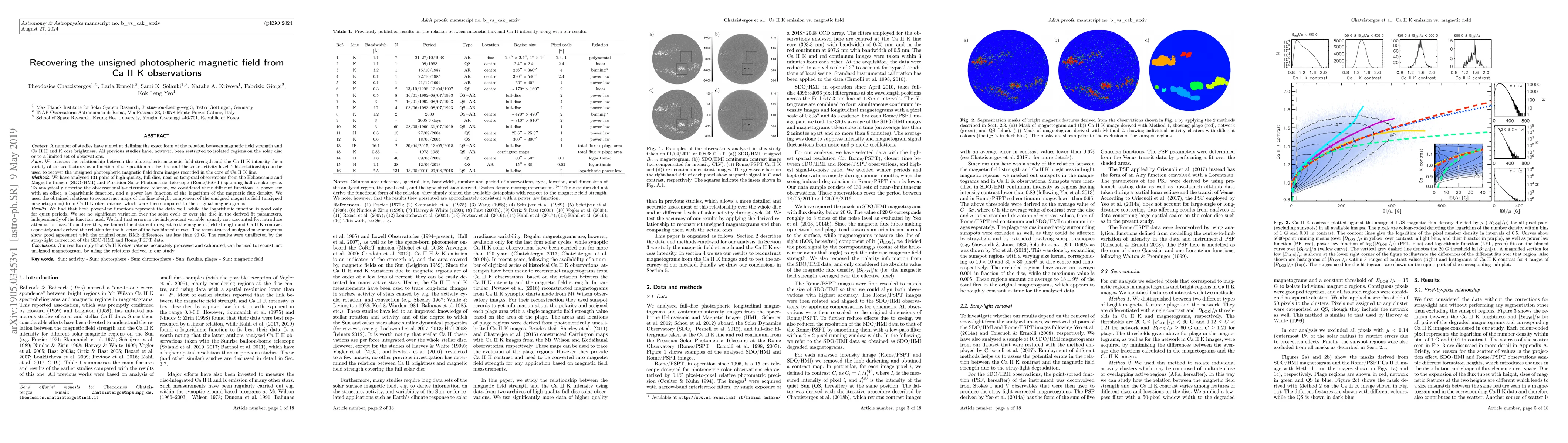 Researchers developed a method to recover the unsigned photospheric magnetic field from Ca II K observations, achieving an RMS difference of less than 90 G with reconstructed magnetograms.
