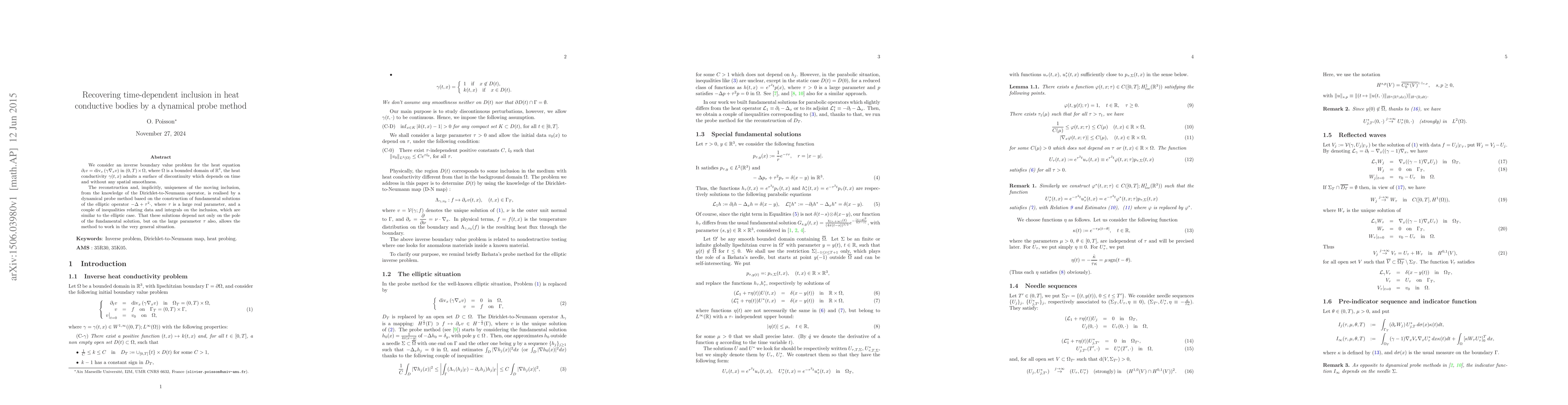 Researchers developed a method to recover time-dependent inclusions in heat conductive bodies using a dynamical probe method that utilizes fundamental solutions of the elliptic operator. This approach allows for the reconstruction of moving inclusions with surface discontinuity from Dirichlet-to-Neumann operator data.