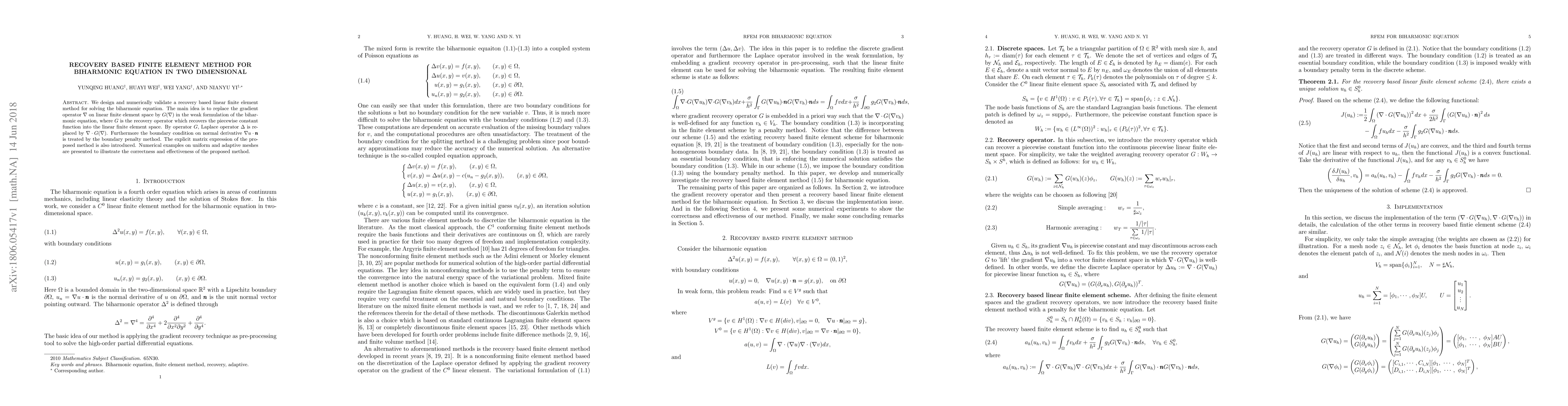 This paper proposes a recovery-based linear finite element method for solving the biharmonic equation by replacing the gradient operator with a recovery operator $G$ in the weak formulation, transforming the Laplace operator into $\nabla\cdot G(\nabla)$. The method is numerically validated through examples on uniform and adaptive meshes to demonstrate its correctness and effectiveness.