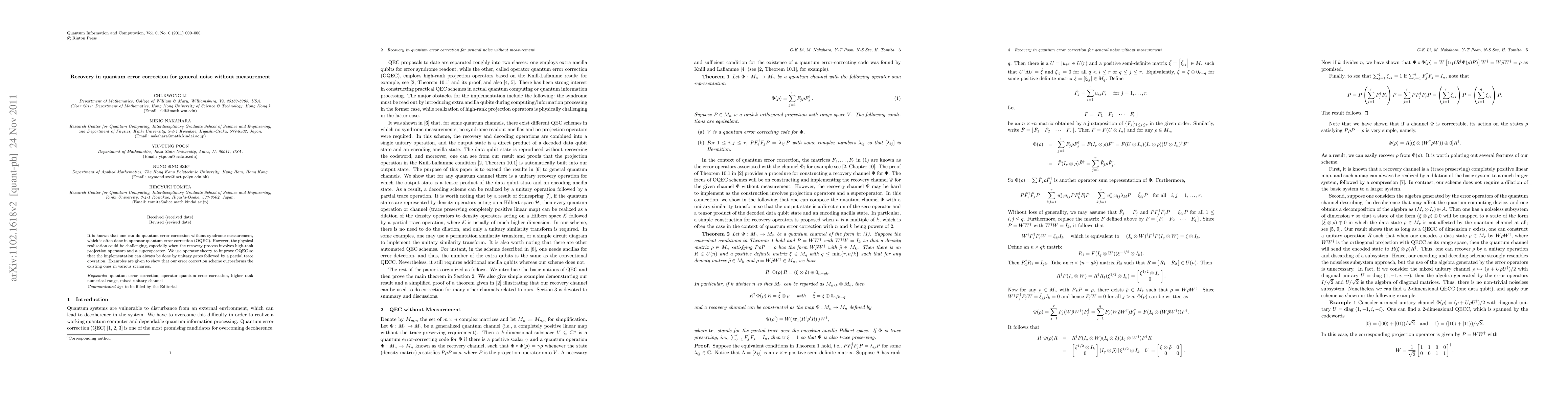 This paper proposes an improved operator quantum error correction (OQEC) scheme that eliminates the need for syndrome measurement, simplifying the recovery process to unitary gates followed by a partial trace. The new method is shown to outperform existing techniques in various scenarios.