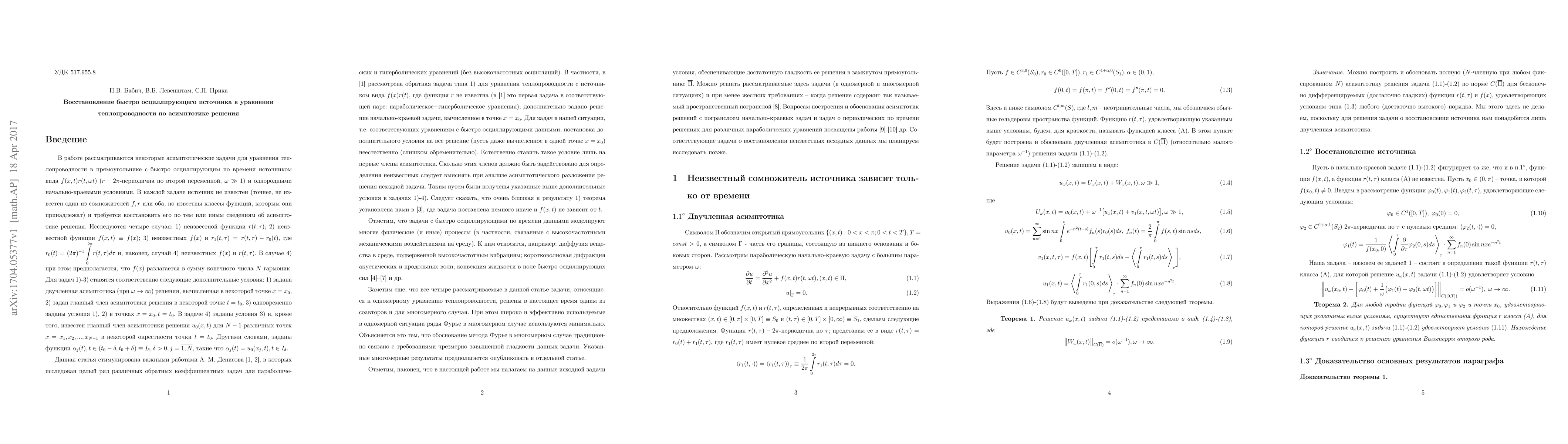 Four problems about recovery of a high-frequency source in the one-dimension heat equation with homogeneous initial-boundary conditions by some information about partial asymptotic of its solution have solved. It is shown, that the source can be completely recovered from a specific data about incomplete (two-terms) asymptotic of the solution. Before formulation of each problem about recovery of a source, construction and justification of the asymptotic of the solution of original initial-boundary problem is given.