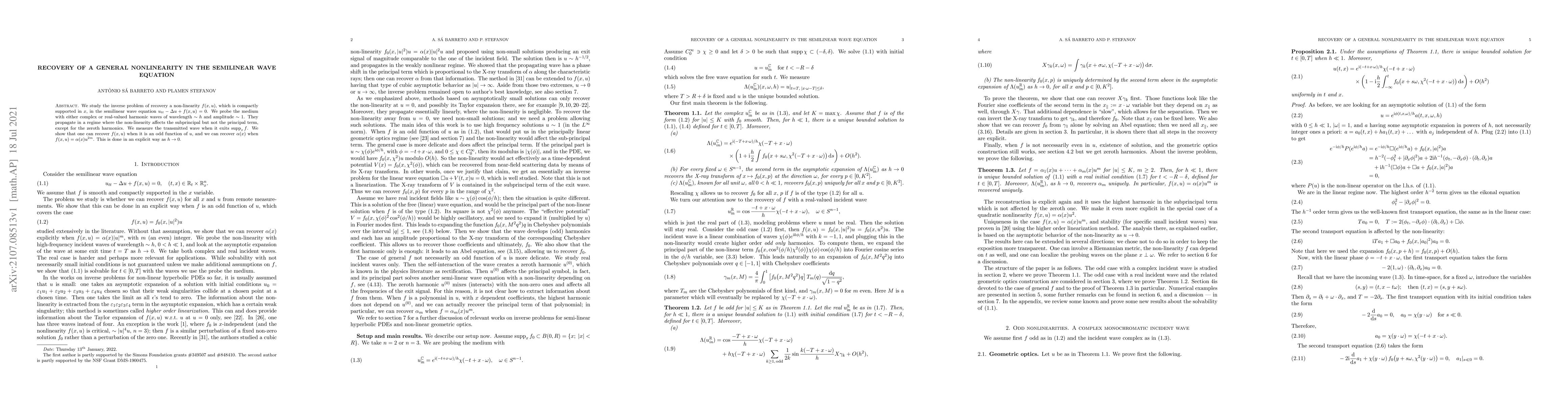 Researchers recover a general nonlinearity in the semilinear wave equation by measuring transmitted waves when they exit a region where the nonlinearity is compactly supported; this can help identify properties like f(x,u) = alpha(x)u^(2m).