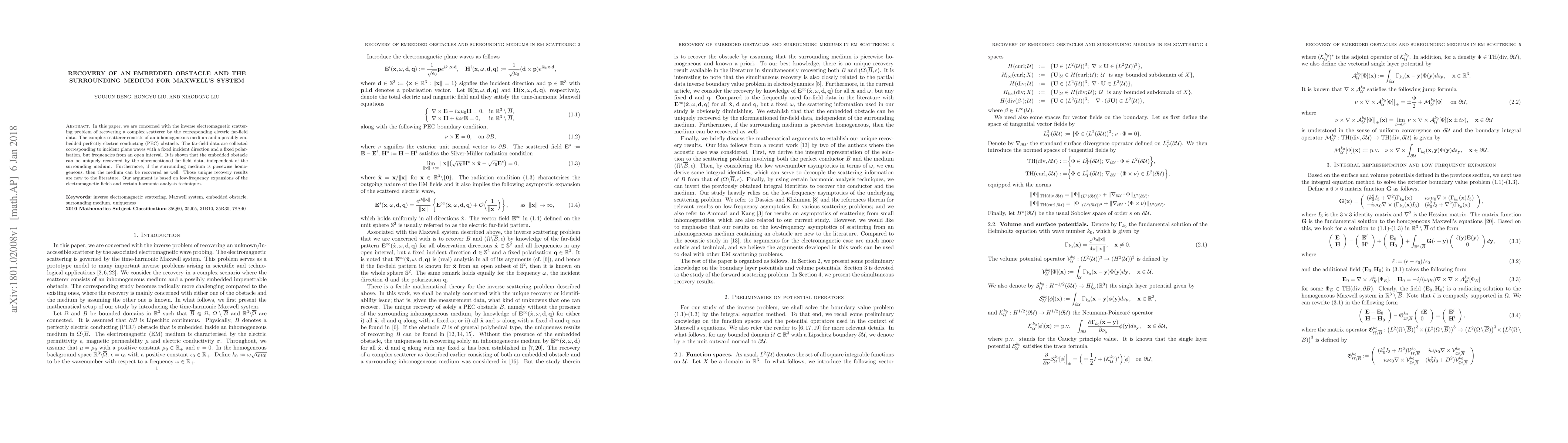 This paper addresses the inverse electromagnetic scattering problem to uniquely recover an embedded perfectly electric conducting obstacle and its surrounding medium using electric far-field data. Unique recovery is demonstrated through low-frequency expansions and harmonic analysis techniques, with new results for piecewise homogeneous media.