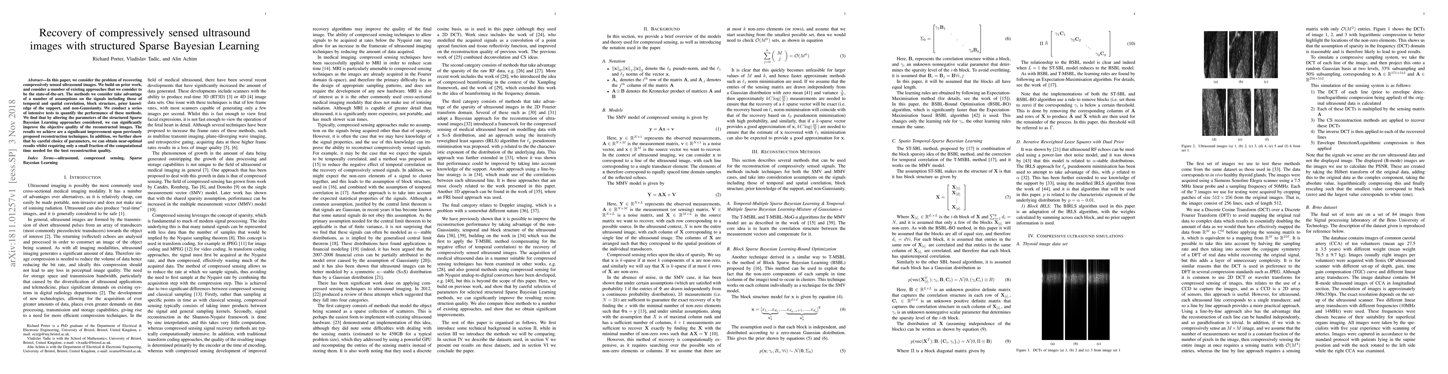 This paper proposes enhanced recovery techniques for compressively sensed ultrasound images using structured Sparse Bayesian Learning, achieving superior reconstruction quality and computational efficiency compared to state-of-the-art methods. The optimized parameter settings enable near-optimal results with significantly reduced computational time.