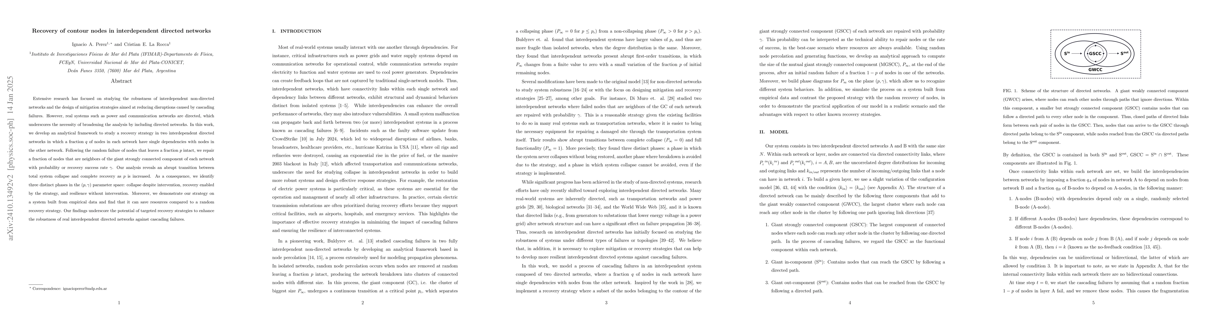 This study explores recovery strategies for interdependent directed networks, revealing an abrupt transition between full collapse and complete recovery based on intervention probability. An analytical framework using node percolation and generating functions identifies three distinct regions in the $(p, \gamma)$ plane, showing conditions where intervention is necessary, sufficient, or unnecessary to prevent cascading failures.