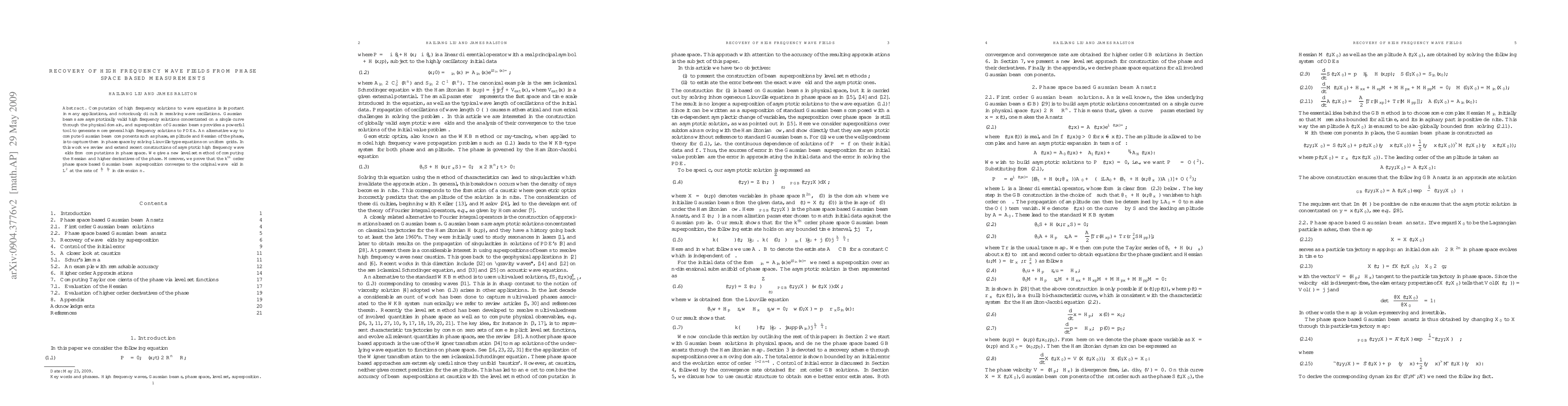 Computation of high frequency solutions to wave equations is important in many applications, and notoriously difficult in resolving wave oscillations. Gaussian beams are asymptotically valid high frequency solutions concentrated on a single curve through the physical domain, and superposition of Gaussian beams provides a powerful tool to generate more general high frequency solutions to PDEs. An alternative way to compute Gaussian beam components such as phase, amplitude and Hessian of the phase, is to capture them in phase space by solving Liouville type equations on uniform grids. In this work we review and extend recent constructions of asymptotic high frequency wave fields from computations in phase space. We give a new level set method of computing the Hessian and higher derivatives of the phase. Moreover, we prove that the $k^{th}$ order phase space based Gaussian beam superposition converges to the original wave field in $L^2$ at the rate of $\ep^{\frac{k}{2}-\frac{n}{4}}$ in dimension $n$.