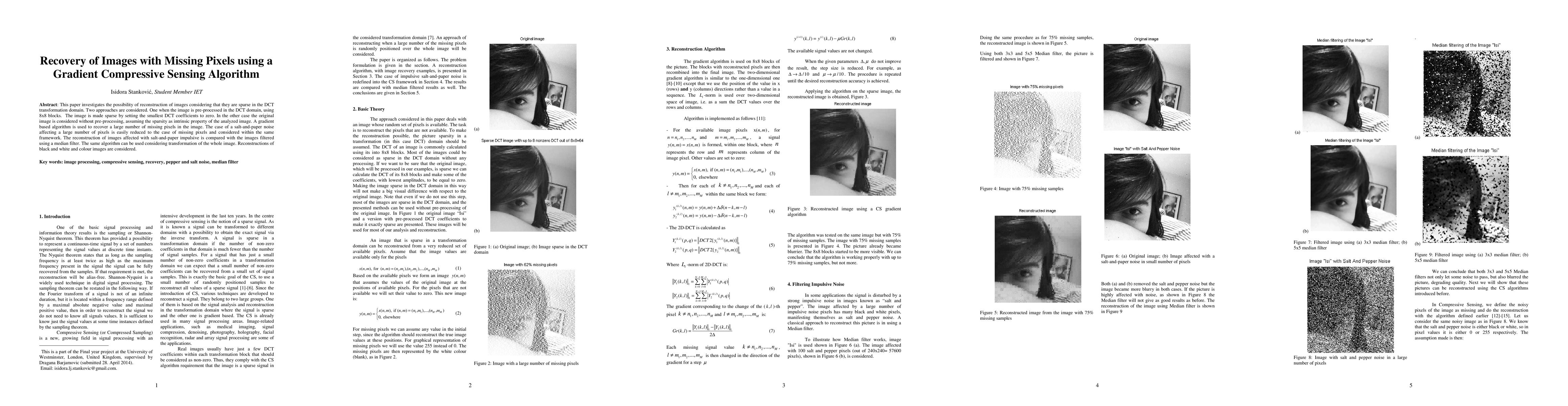 Researchers develop an algorithm to recover images with missing pixels using a gradient compressive sensing technique, improving upon traditional methods like median filtering.