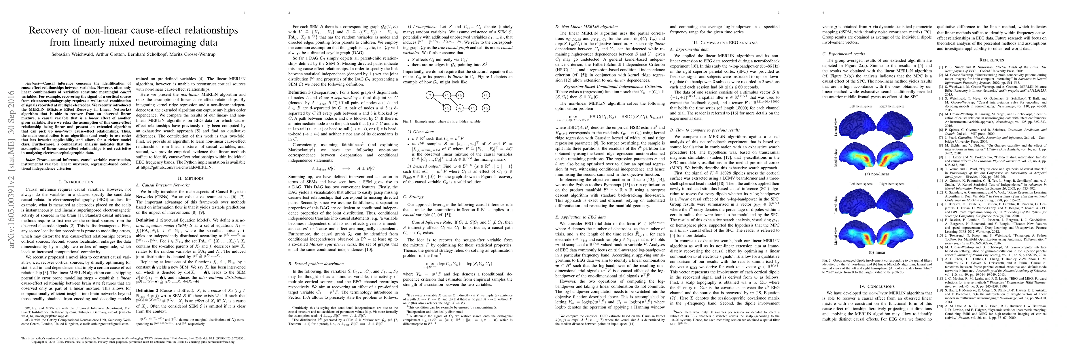 This paper introduces an extended version of the MERLiN algorithm to recover non-linear cause-effect relationships from linearly mixed neuroimaging data, broadening its applicability. Comparative analysis shows that linear assumptions are often sufficient for EEG data analysis.