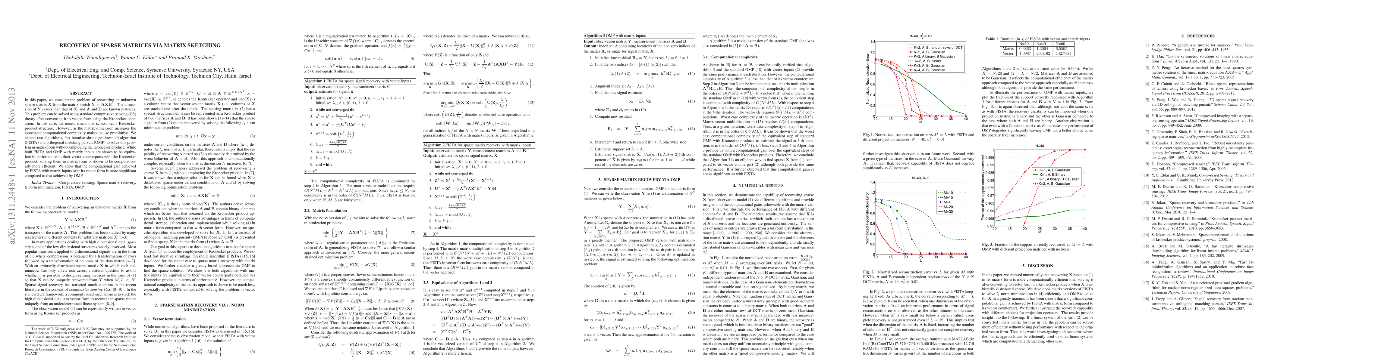 Researchers developed algorithms to recover sparse matrices from reduced measurements, achieving better computational efficiency than their vector-based counterparts.