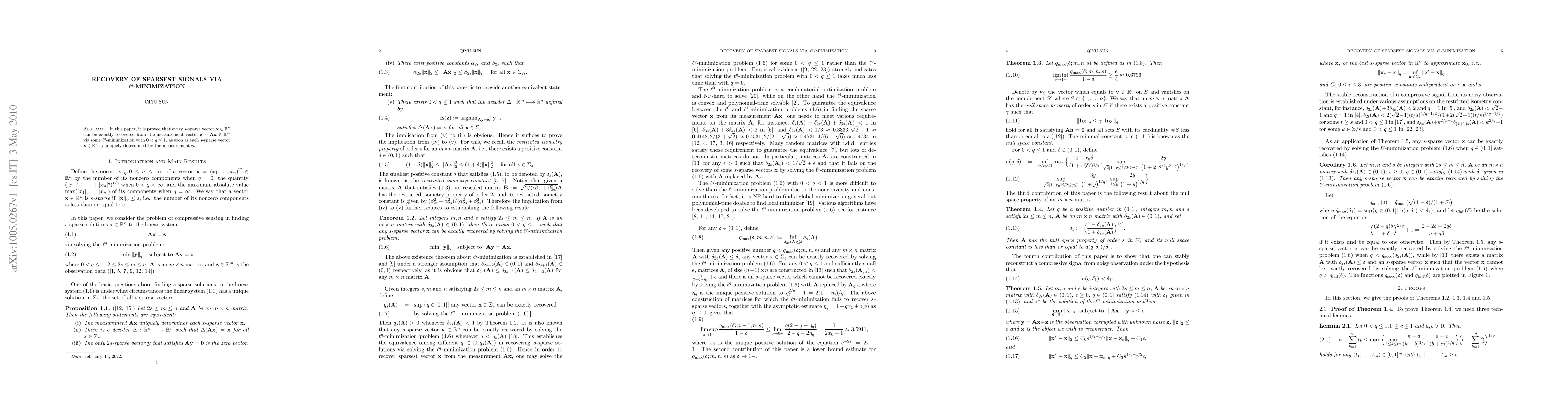 Researchers prove that sparse vectors can be exactly recovered from measurements using $\\ell^q$-minimization for $0< q\\[le 1$, as long as the measurement uniquely determines the vector.