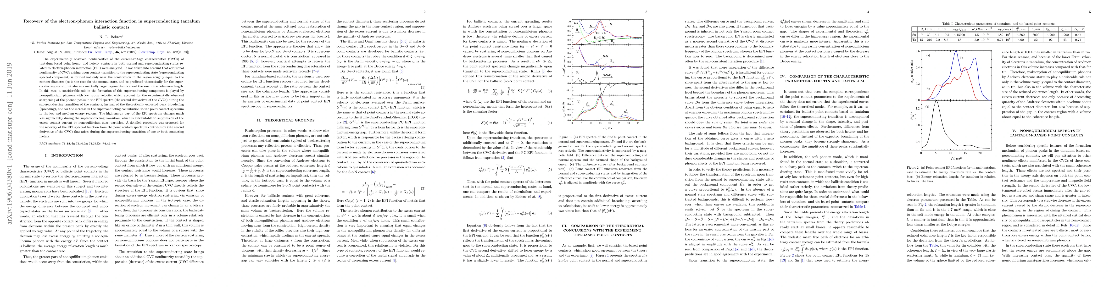 This paper analyzes the nonlinear current-voltage characteristics of tantalum-based point contacts, revealing that the superconducting spectral component arises over a larger region than predicted, due to nonequilibrium phonons. A method for recovering the electron-phonon interaction function from the point contact spectrum is proposed.