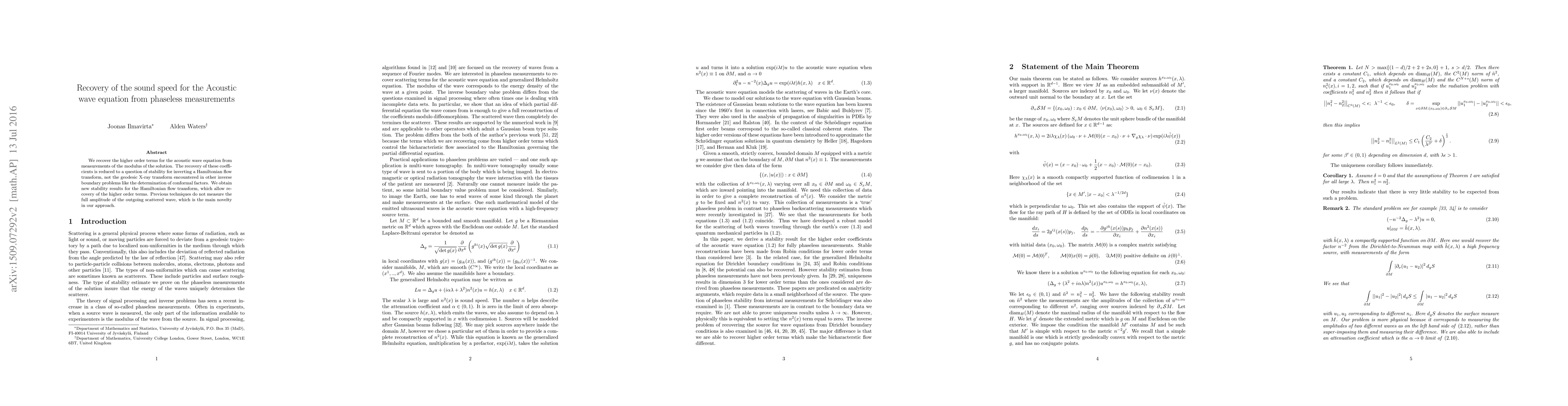 We recover the higher order terms for the acoustic wave equation from measurements of the modulus of the solution. The recovery of these coefficients is reduced to a question of stability for inverting a Hamiltonian flow transform, not the geodesic X-ray transform encountered in other inverse boundary problems like the determination of conformal factors. We obtain new stability results for the Hamiltonian flow transform, which allow to recover the higher order terms.