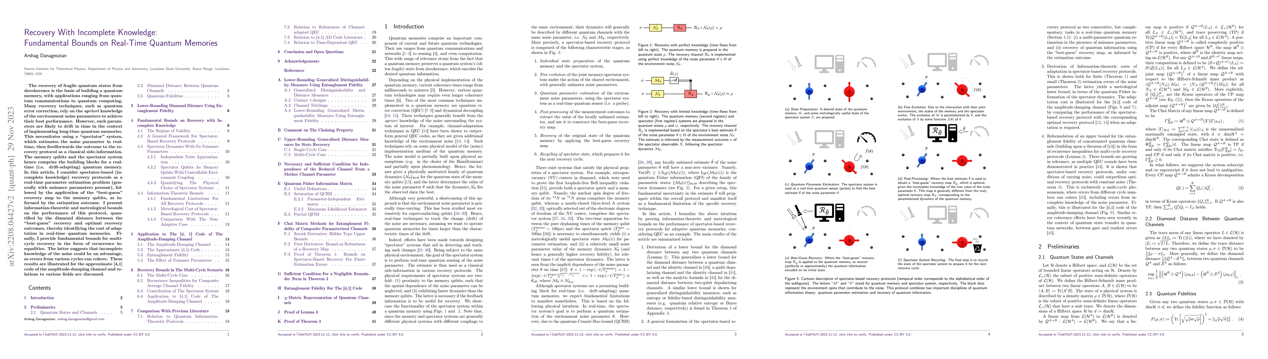 The recovery of fragile quantum states from decoherence is the basis of building a quantum memory, with applications ranging from quantum communications to quantum computing. Many recovery techniques, such as quantum error correction, rely on the apriori knowledge of the environment noise parameters to achieve their best performance. However, such parameters are likely to drift in time in the context of implementing long-time quantum memories. This necessitates using a "spectator" system, which estimates the noise parameter in real-time, then feed-forwards the outcome to the recovery protocol as a classical side-information. The memory qubits and the spectator system hence comprise the building blocks for a real-time (i.e. drift-adapting) quantum memory. In this article, I consider spectator-based (incomplete knowledge) recovery protocols as a real-time parameter estimation problem (generally with nuisance parameters present), followed by the application of the "best-guess" recovery map to the memory qubits, as informed by the estimation outcome. I present information-theoretic and metrological bounds on the performance of this protocol, quantified by the diamond distance between the "best-guess" recovery and optimal recovery outcomes, thereby identifying the cost of adaptation in real-time quantum memories. Finally, I provide fundamental bounds for multi-cycle recovery in the form of recurrence inequalities. The latter suggests that incomplete knowledge of the noise could be an advantage, as errors from various cycles can cohere. These results are illustrated for the approximate [4,1] code of the amplitude-damping channel and relations to various fields are discussed.