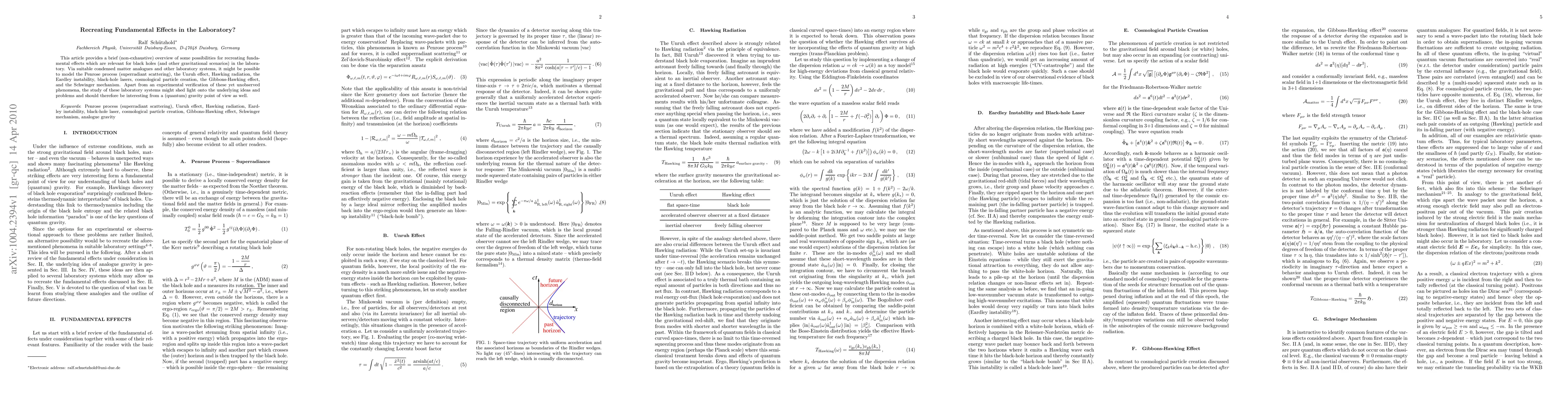 This paper explores the potential of recreating fundamental gravitational effects, such as Hawking radiation and the Penrose process, in laboratory settings using condensed matter analogues. Such experiments could provide insights into quantum gravity and potentially verify unobserved phenomena.