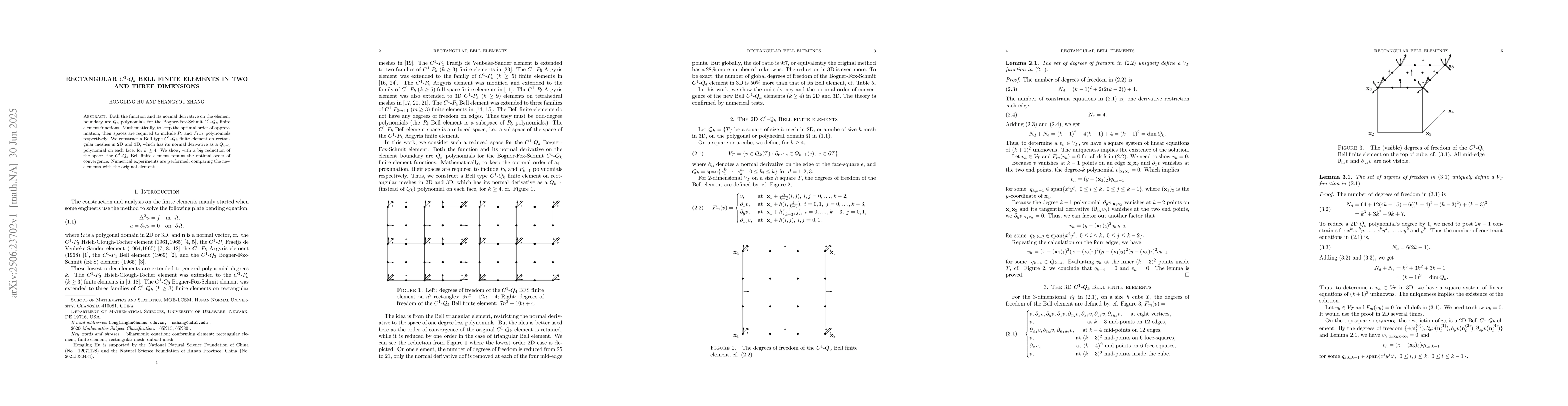 Both the function and its normal derivative on the element boundary are $Q_k$ polynomials for the Bogner-Fox-Schmit $C^1$-$Q_k$ finite element functions. Mathematically, to keep the optimal order of approximation, their spaces are required to include $P_k$ and $P_{k-1}$ polynomials respectively. We construct a Bell type $C^1$-$Q_k$ finite element on rectangular meshes in 2D and 3D, which has its normal derivative as a $Q_{k-1}$ polynomial on each face, for $k\ge 4$. We show, with a big reduction of the space, the $C^1$-$Q_k$ Bell finite element retains the optimal order of convergence. Numerical experiments are performed, comparing the new elements with the original elements.