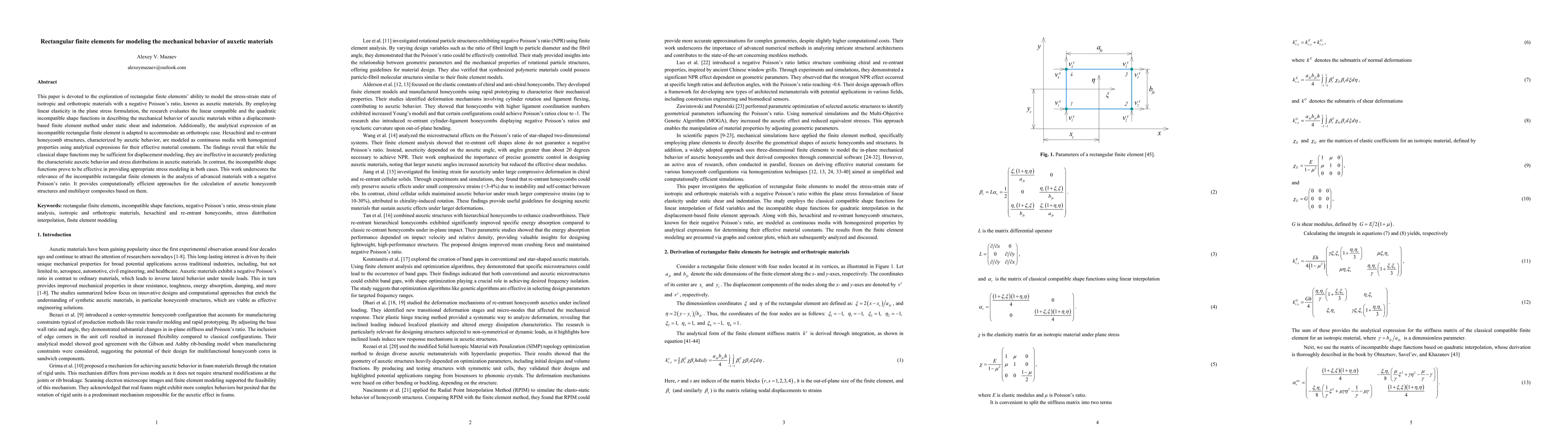 This paper investigates the use of rectangular finite elements to model the mechanical behavior of auxetic materials using linear elasticity. It finds that incompatible shape functions better predict the characteristic auxetic behavior and stress distributions compared to classical shape functions.