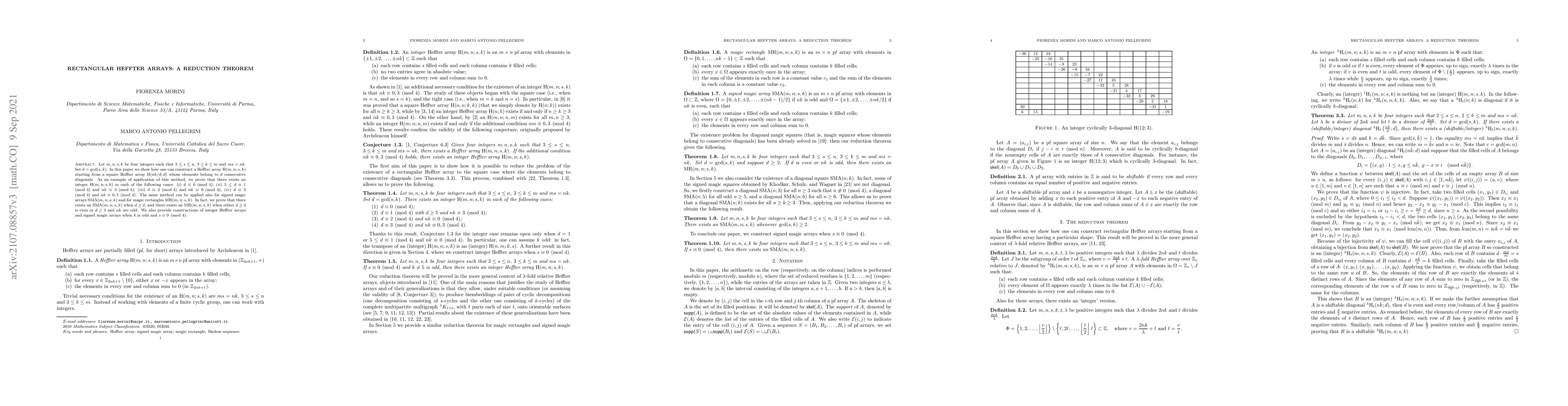 This paper presents a reduction theorem for constructing rectangular Heffter arrays from square Heffter arrays, proving the existence of such arrays under specific conditions on the integers involved. It also extends the method to signed magic arrays and magic rectangles, providing constructions for various cases.