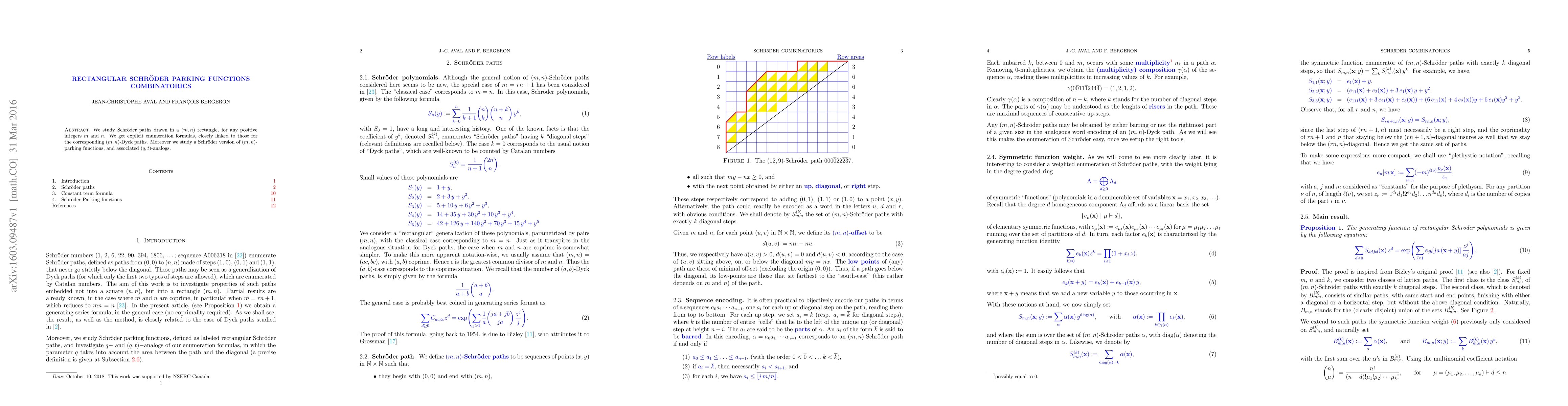 This paper enumerates Schroder paths within (m,n) rectangles, deriving formulas linked to (m,n)-Dyck paths, and explores Schroder versions of (m,n)-parking functions with their associated (q,t)-analogs.