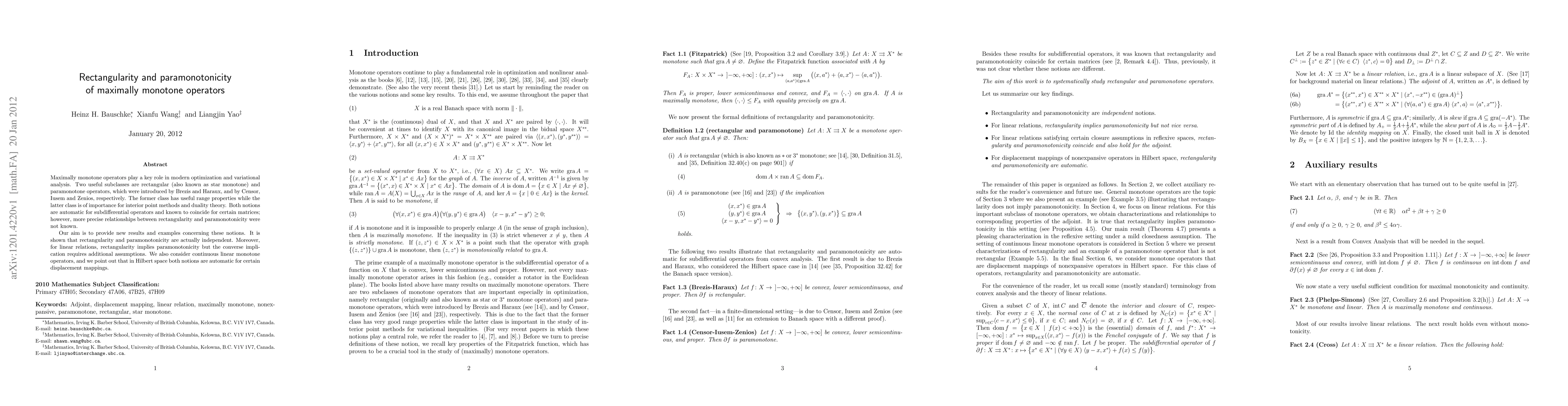 This paper investigates the relationships between rectangularity and paramonotonicity in maximally monotone operators, revealing that these two properties are independent. It demonstrates that for linear relations, rectangularity implies paramonotonicity but not vice versa without additional assumptions, and highlights that in Hilbert spaces, both notions are automatic for specific displacement mappings.