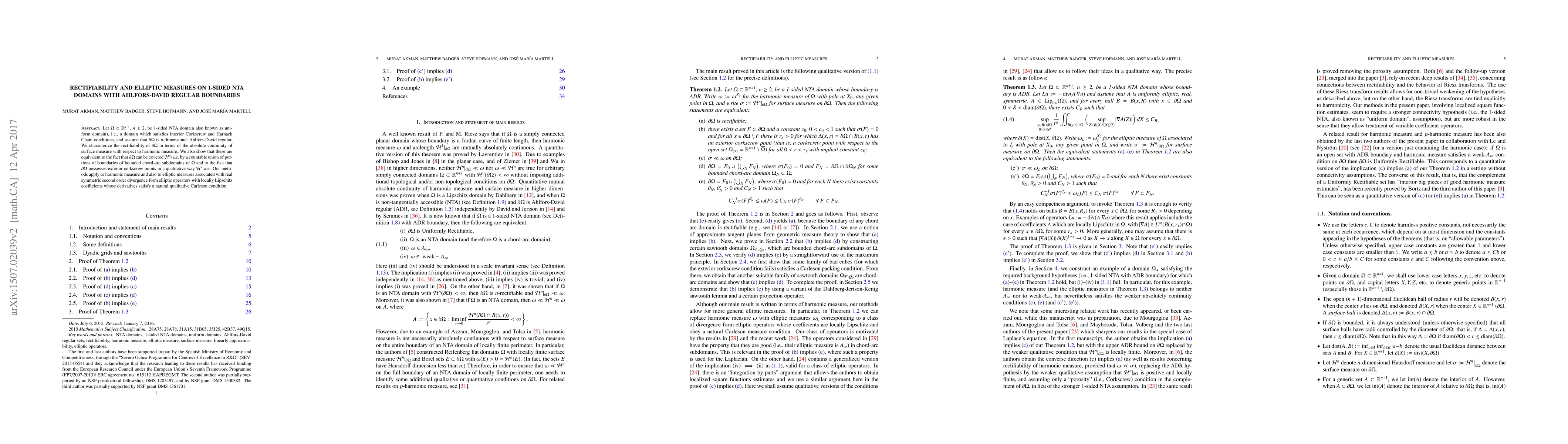 This paper characterizes the rectifiability of the boundary of a 1-sided NTA domain in terms of the absolute continuity of surface measure with respect to harmonic measure. It also demonstrates equivalence to covering the boundary by chord-arc subdomains and the presence of exterior corkscrew points. The methods extend to elliptic measures associated with certain elliptic operators.