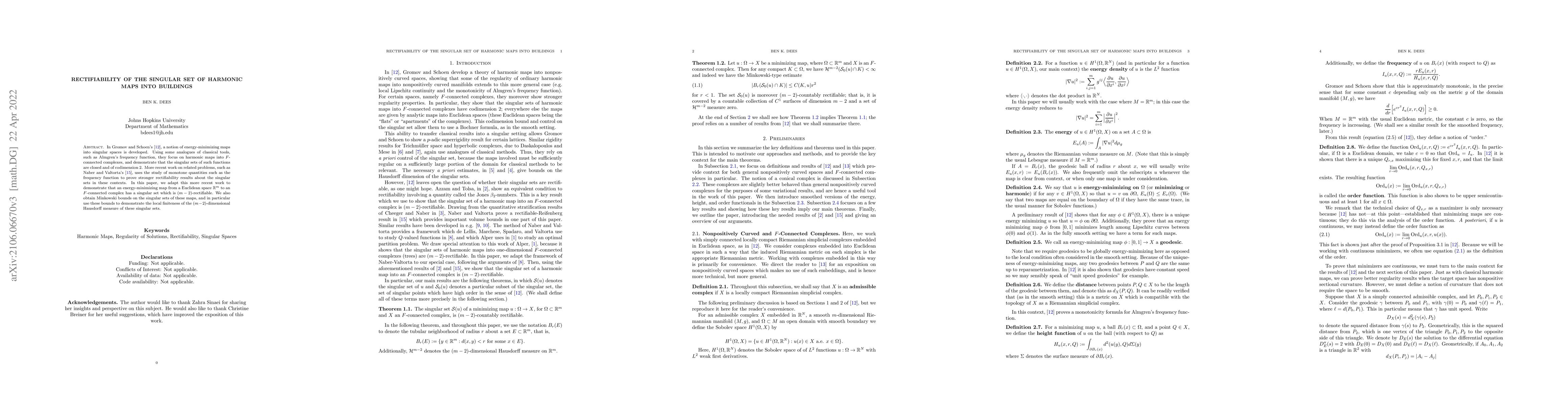 Summary: The paper proves that the singular set of energy-minimizing maps from Euclidean space into $F$-connected complex buildings is $(m-2)$-rectifiable, thereby enhancing the regularity results established by Gromov and Schoen.