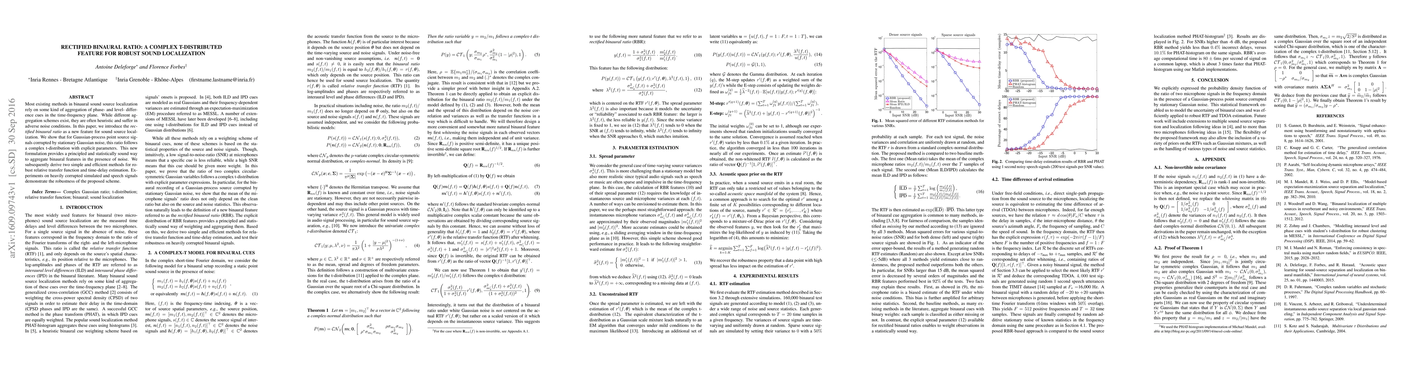 This paper introduces the rectified binaural ratio as a new feature for robust sound localization, showing it follows a complex t-distribution under noise conditions. The proposed method provides a principled approach to aggregate binaural features and demonstrates robust performance in noisy environments.